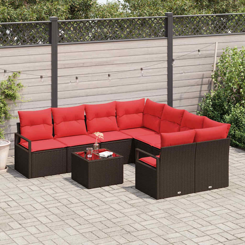 Set de canapea cu pernă Manual 9 pcs Maro și roșu poliratan GartenMobel Dekor