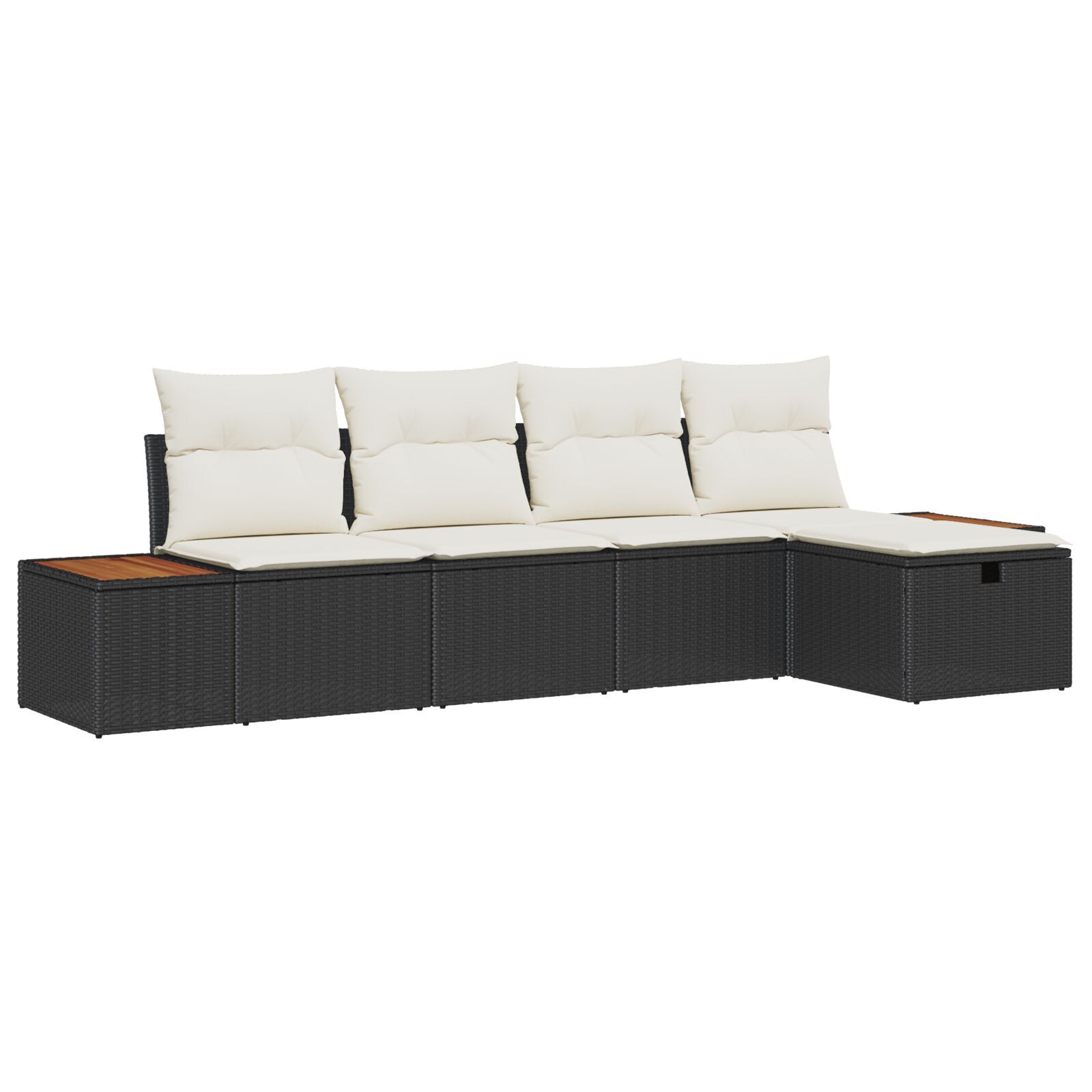 Set de canapea de 5 piese pentru grădină cu perne Ratan Poli Negru GartenMobel Dekor