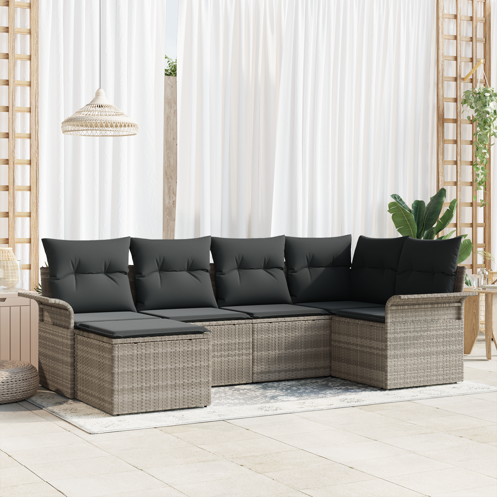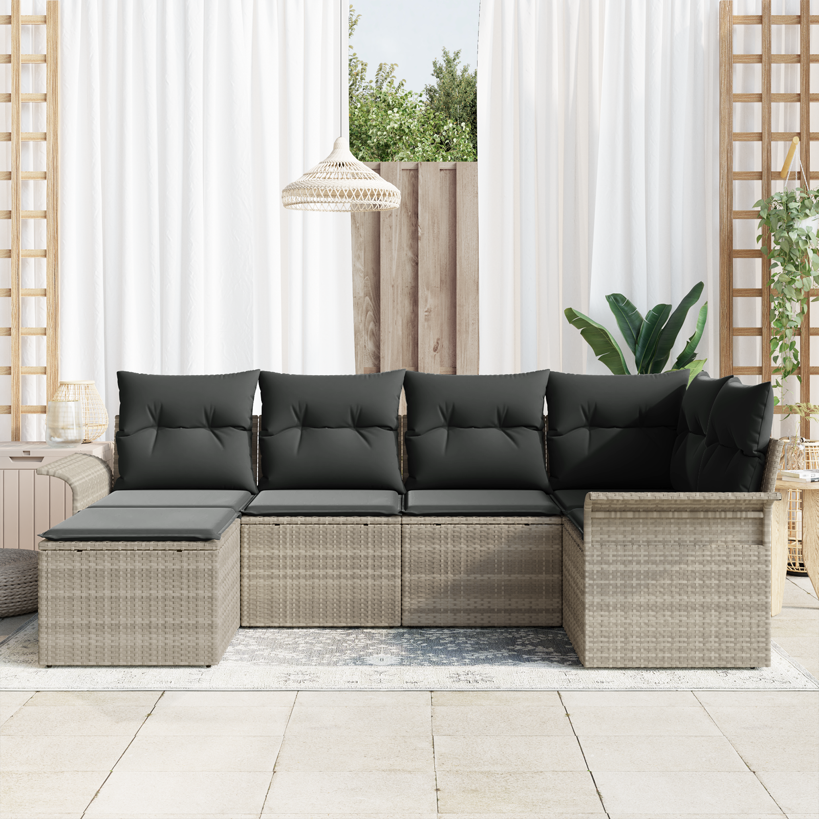 Set de Canapea de 6 Piese pentru Grădină cu Perne Gri Deschis din Ratan Poli GartenMobel Dekor
