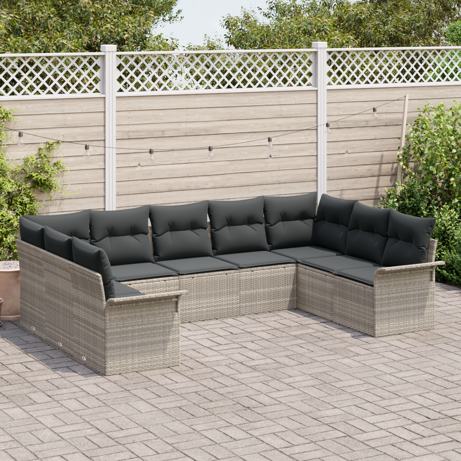 Set de canapea de 9 piese cu perne gri deschis din ratan PE GartenMobel Dekor