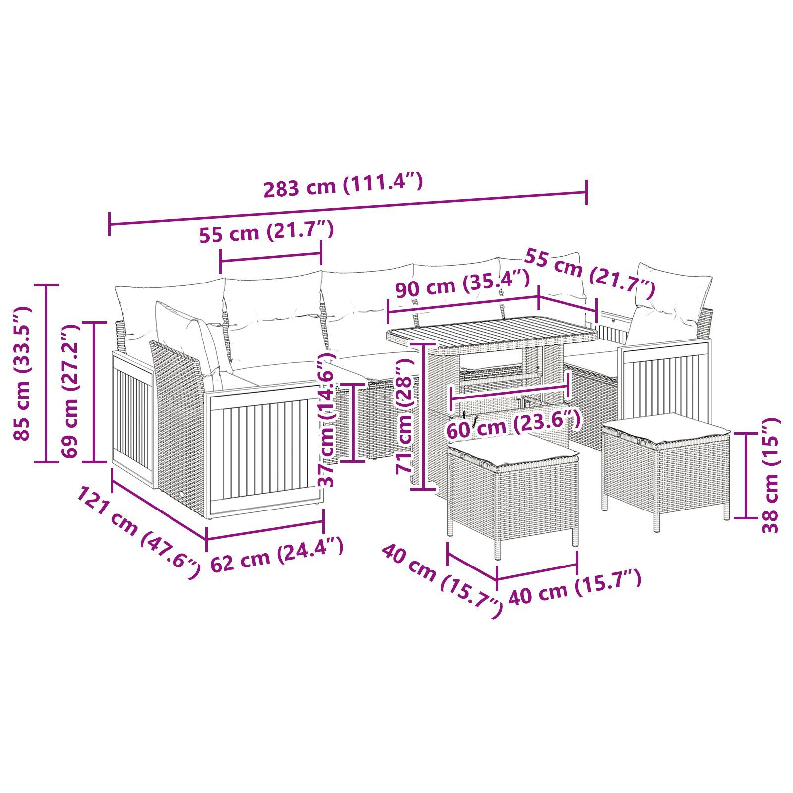 - Utilizare versatilă: Fie că te relaxezi sau faci o petrecere, acest set de canapea exterioară îți îndeplinește toate dorințele. Aranjamentul său spațios poate primi foarte mulți oaspeți, fiind o alegere excelentă pentru distracție afară.