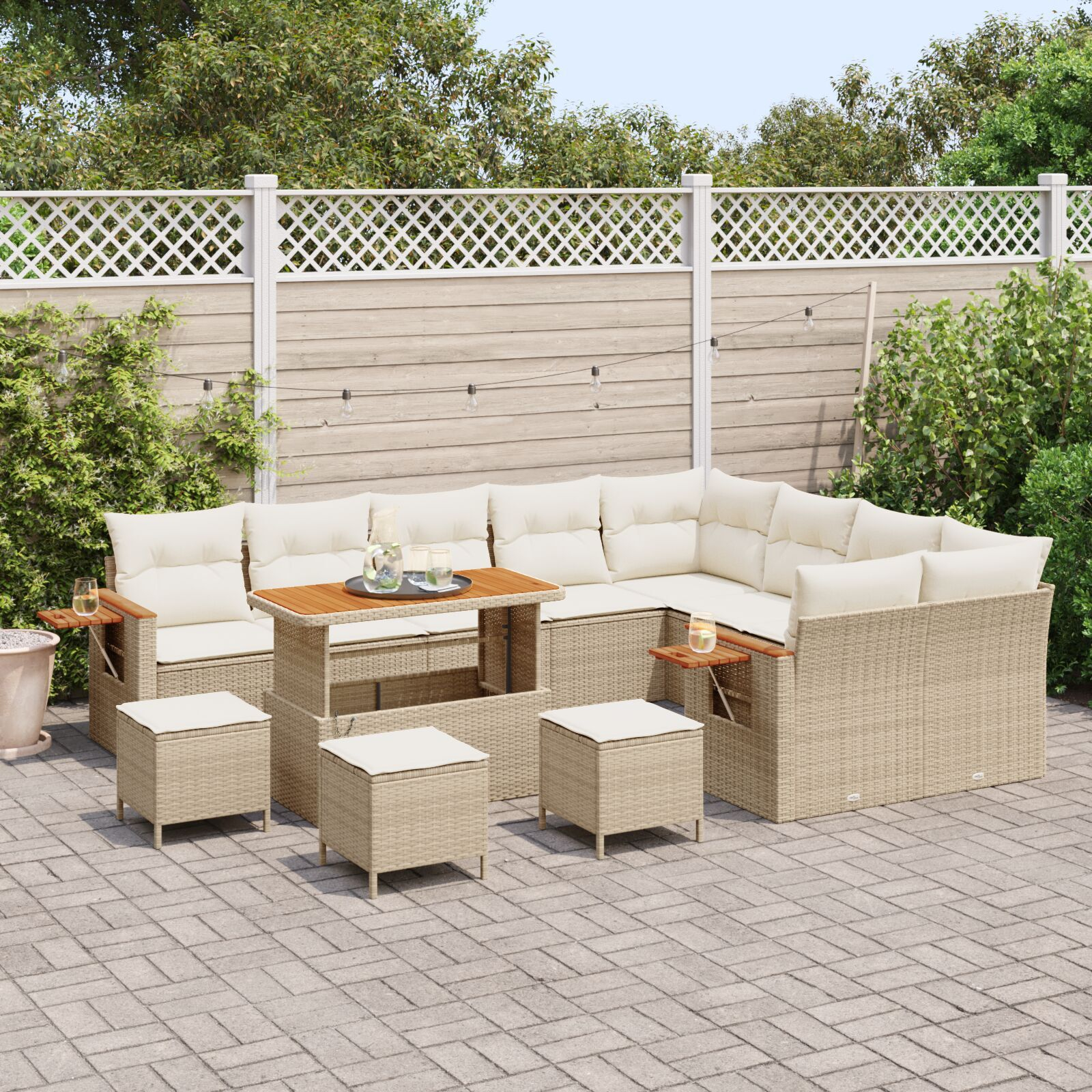 Set de canapea de grădină 13 piese cu perne bej ratan poli acacia, Set de dining de grădină 4 piese cu perne bej ratan poli acacia GartenMobel Dekor