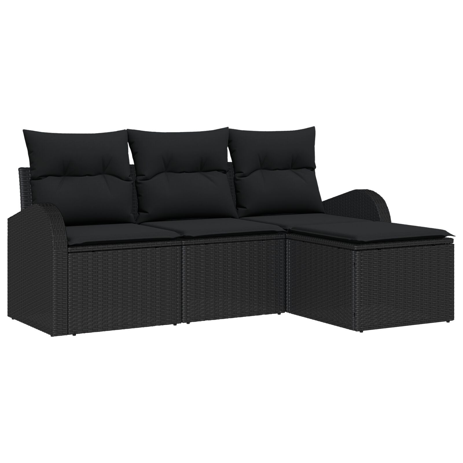 Set de canapea de grădină 4 piese cu perne negru din poli ratan, Canapea de grădină cu 2 locuri cu depozitare și perne negru din poli ratan GartenMobel Dekor