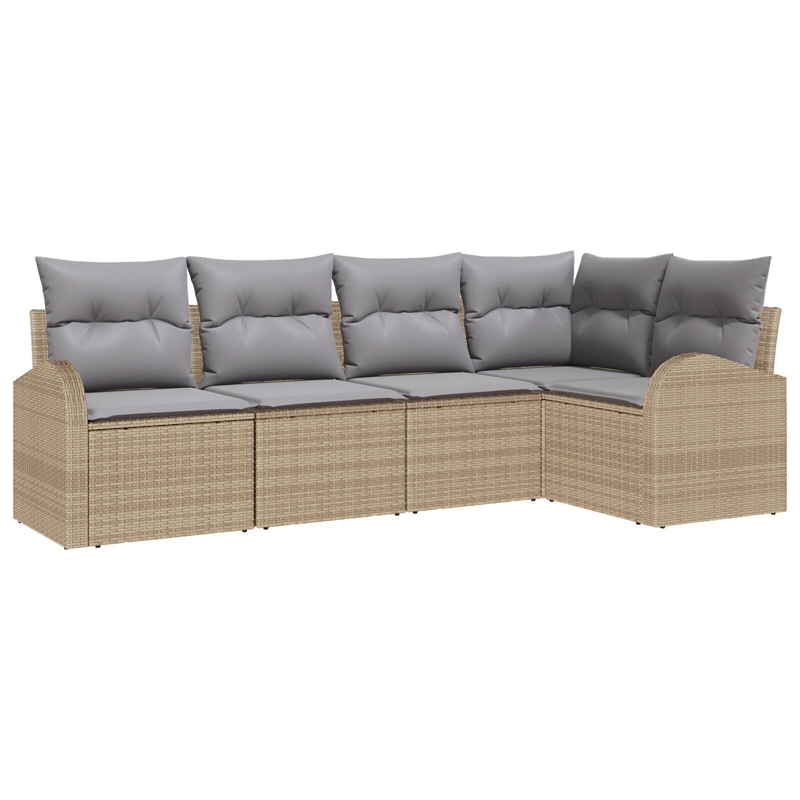 Set de canapea de grădină 5 piese cu perne bej din ratan poli, Canapea de grădină cu 2 locuri cu spațiu de depozitare și perne bej din ratan poli GartenMobel Dekor