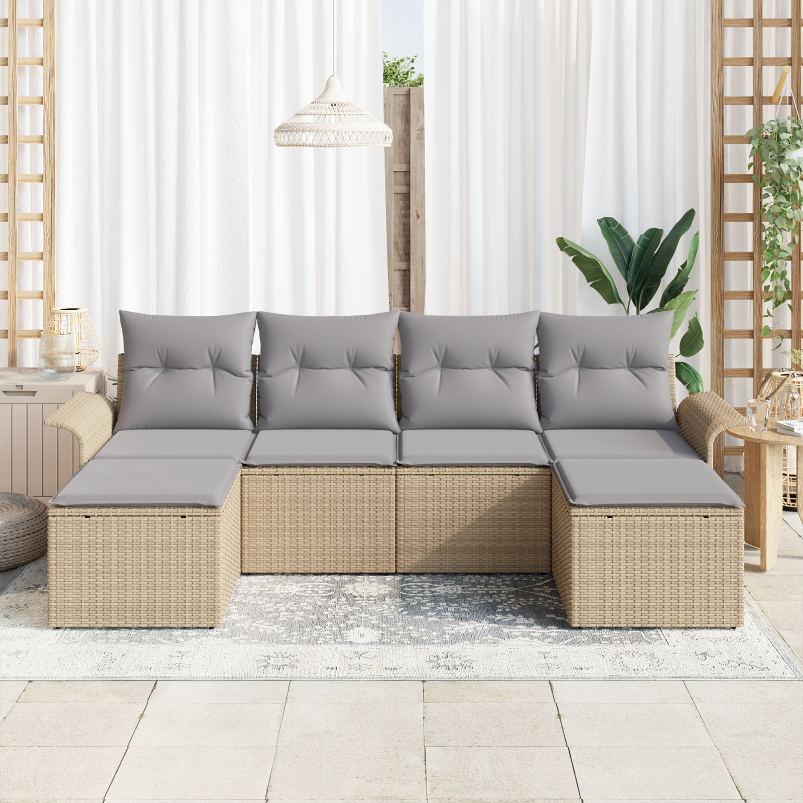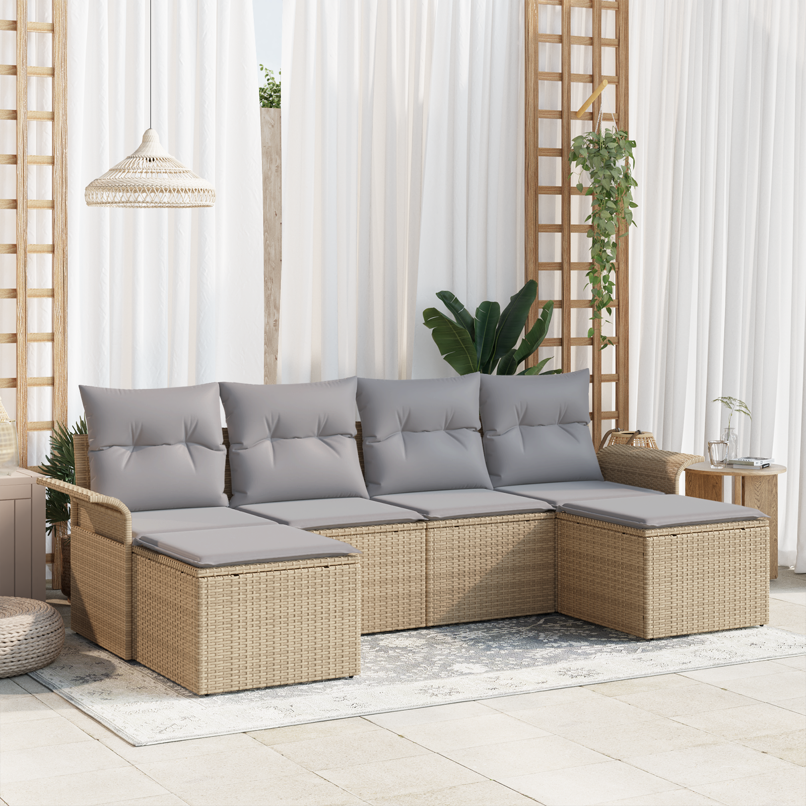 Set de canapea de grădină 6 piese cu perne bej poli ratan GartenMobel Dekor