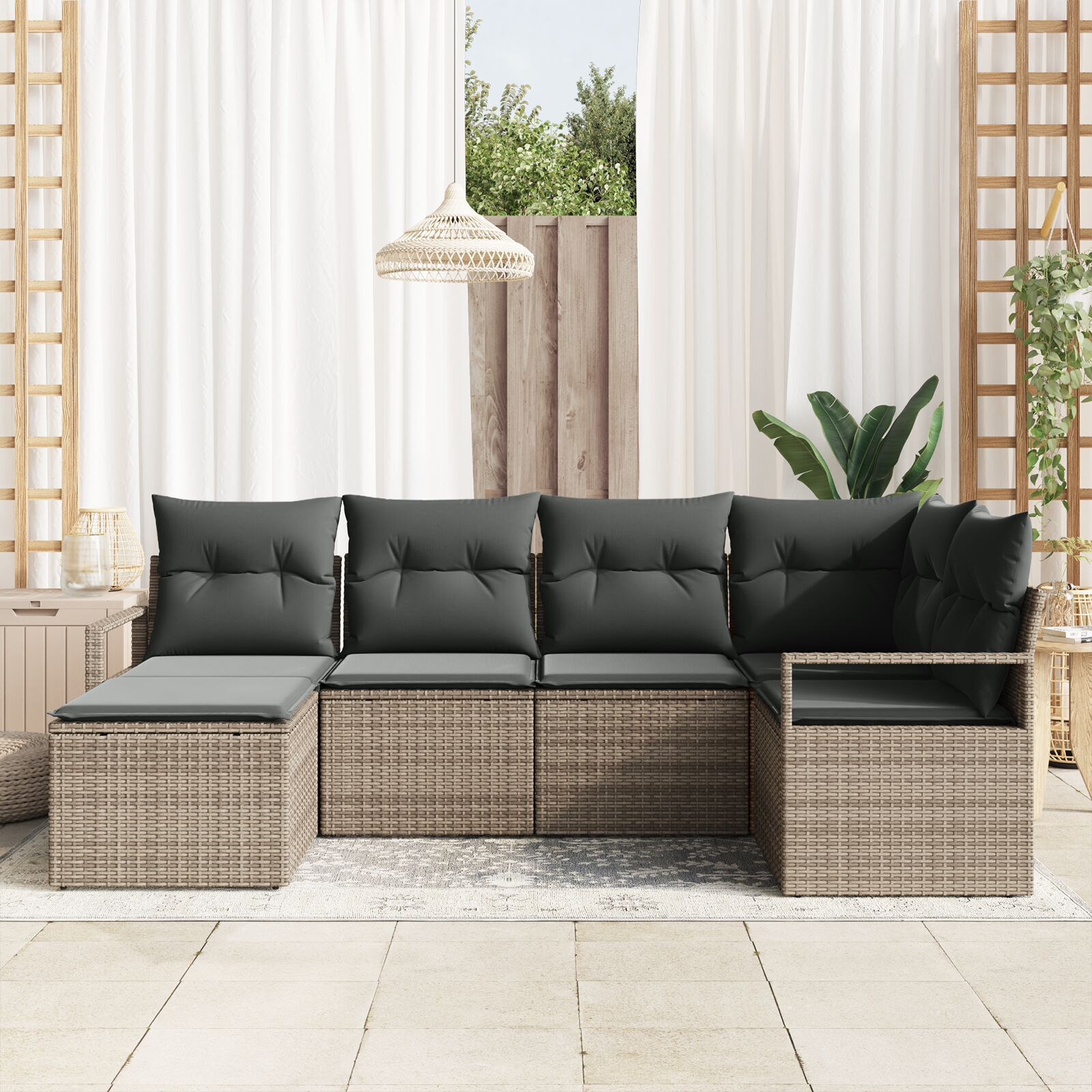 Setul ăsta de canapele de grădină e o alegere stylish pentru spațiile exterioare, creând o atmosferă primitoare pentru relaxare și întâlniri. Cu un aspect modern, e rezistent și se integrează ușor în terase, balcoane sau grădini, fiind confortabil pentru până la șase persoane.