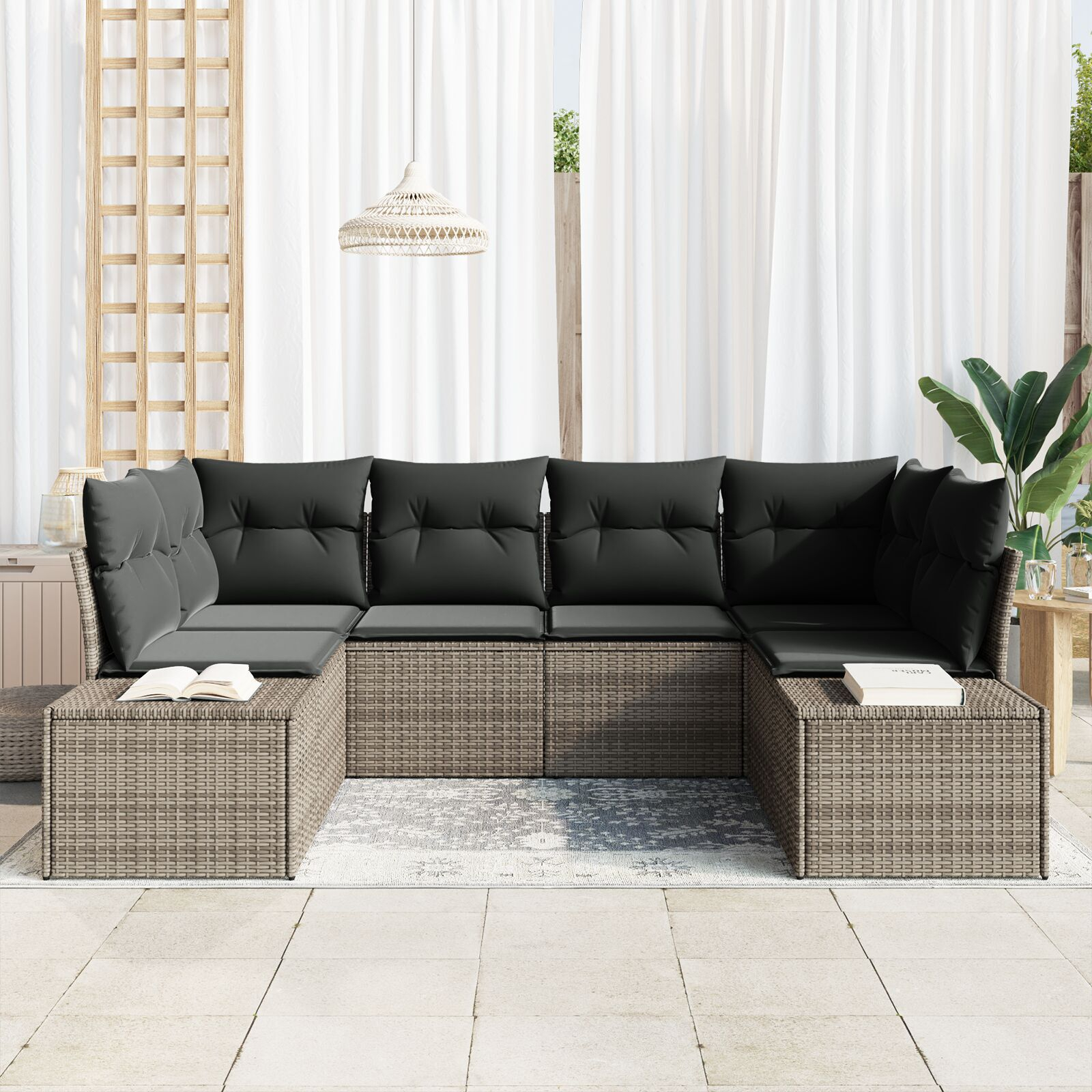 Set de canapea de grădină 6 piese cu perne gri din ratan poli GartenMobel Dekor