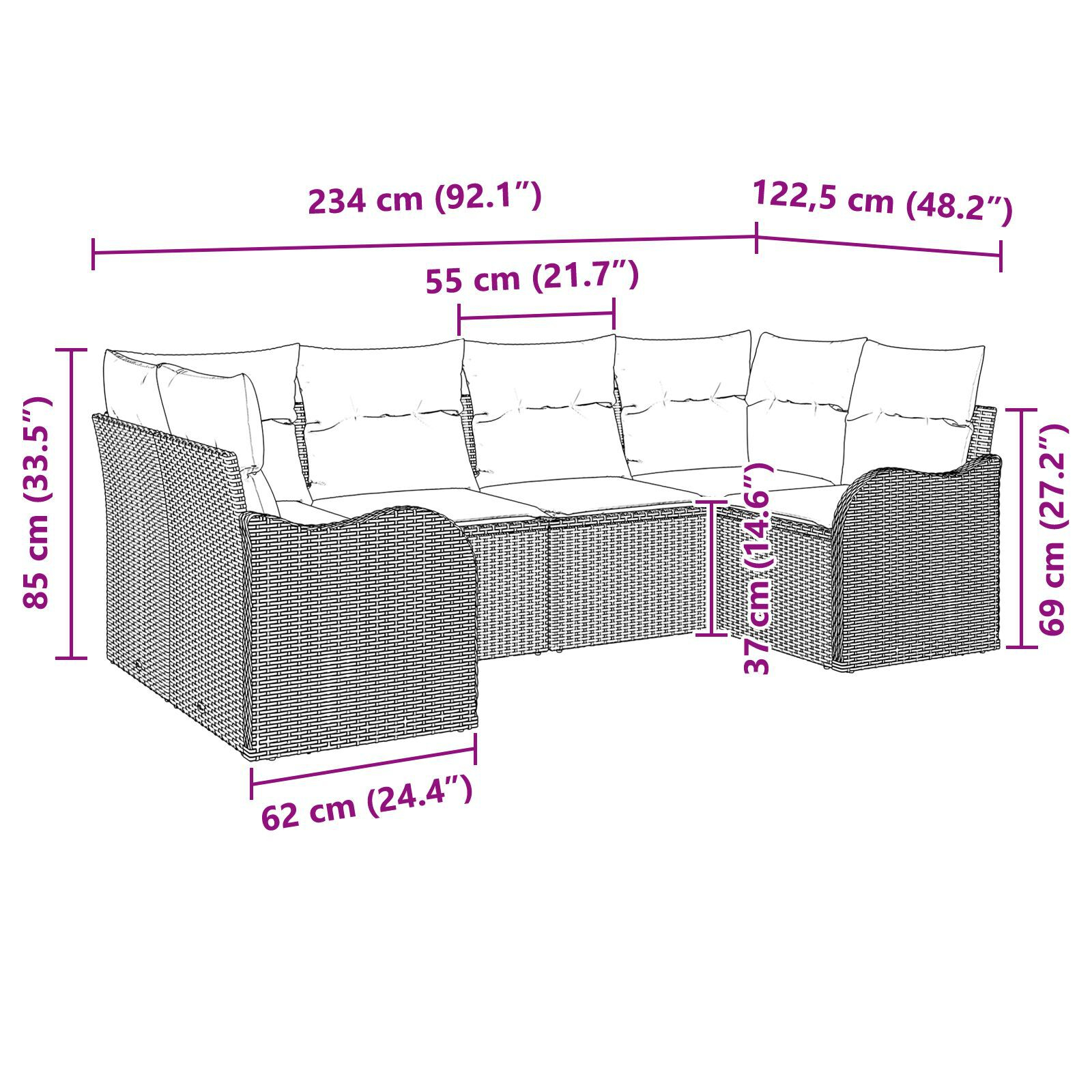 Set de canapea de grădină 6 piese cu perne Negru Ratan Poli, Canapea de grădină cu 2 locuri și perne Negru Ratan Poli GartenMobel Dekor