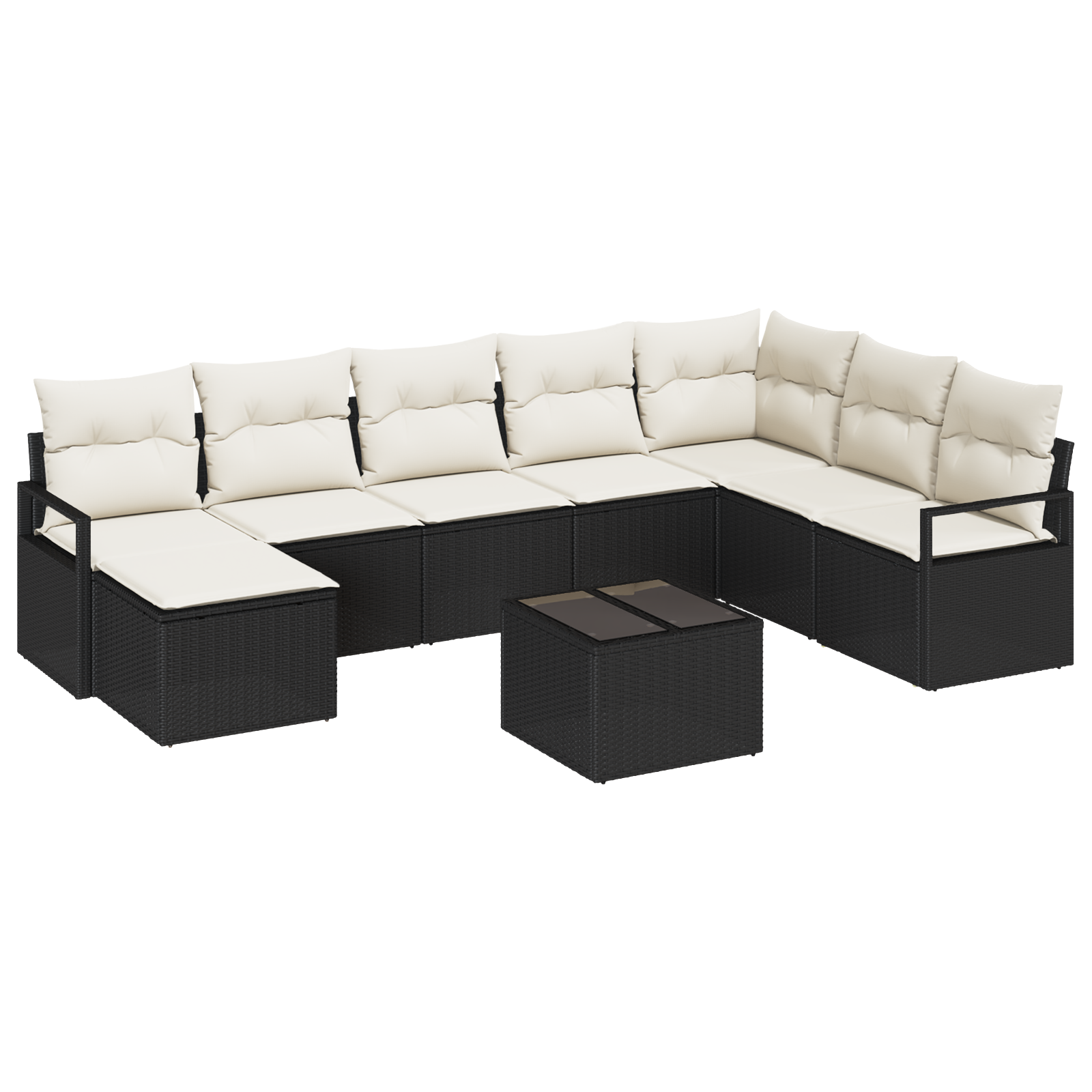 Setul ăsta de canapea de grădină ridică locurile de exterior la un alt nivel cu un design modern și un vibe elegant în negru și crem. E perfect pentru balcoane, grădini sau terase, făcându-l o alegere super pentru întâlniri sau pur și simplu pentru relaxare cu familia și prietenii.
