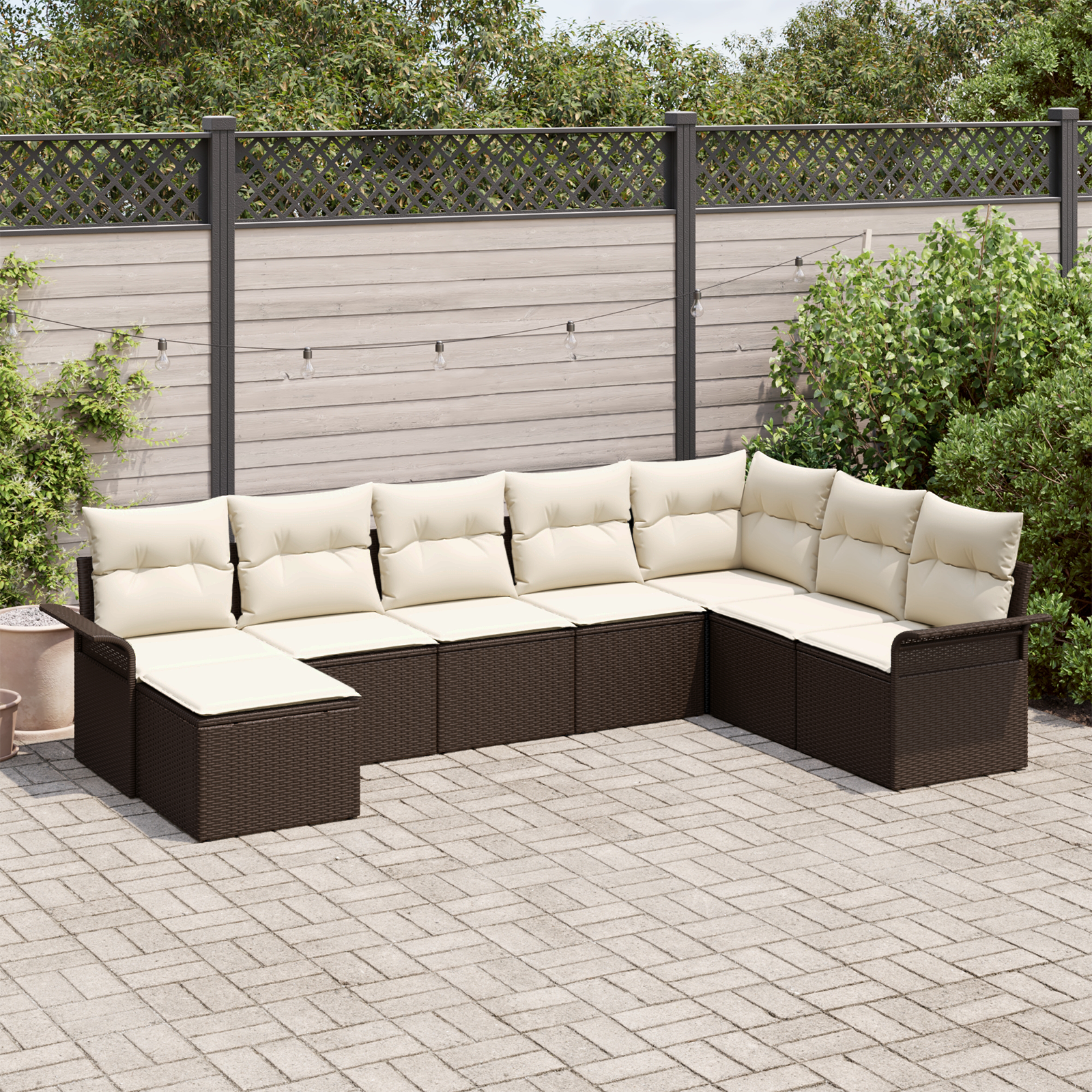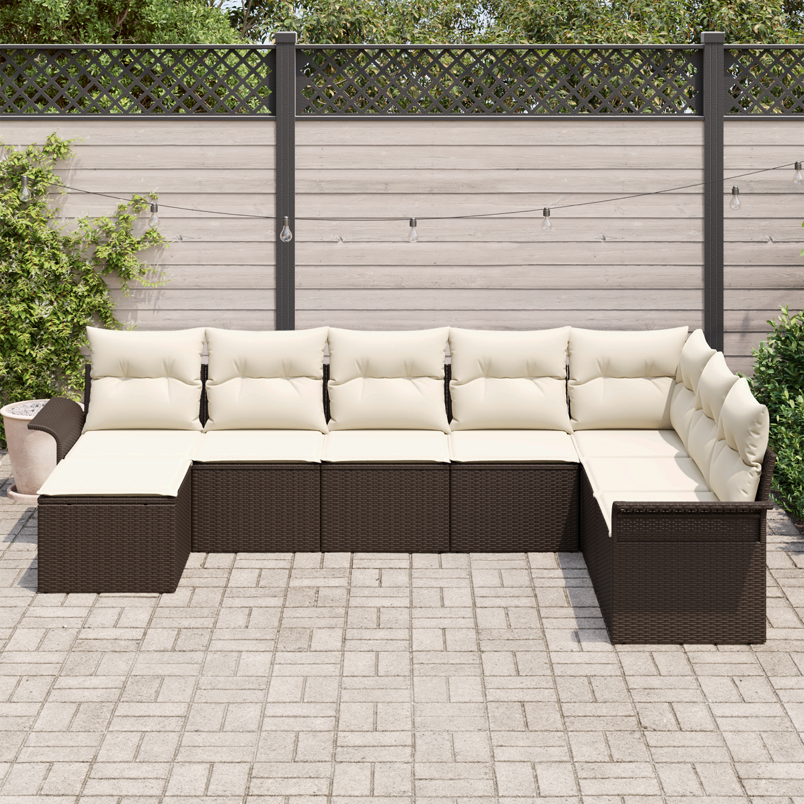 Set de canapea de grădină 8 piese cu perne maro din poliratan, Canapea de grădină pentru 2 persoane cu depozitare și perne maro din poliratan GartenMobel Dekor