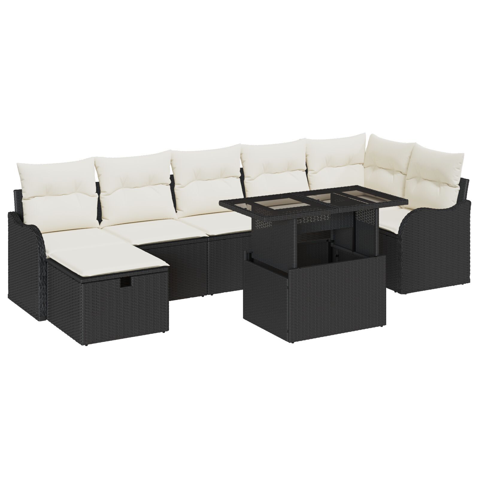 Set de canapea de grădină 8 piese cu perne Negru Poliratan, Canapea de grădină 2 locuri cu perne Negru Poliratan GartenMobel Dekor