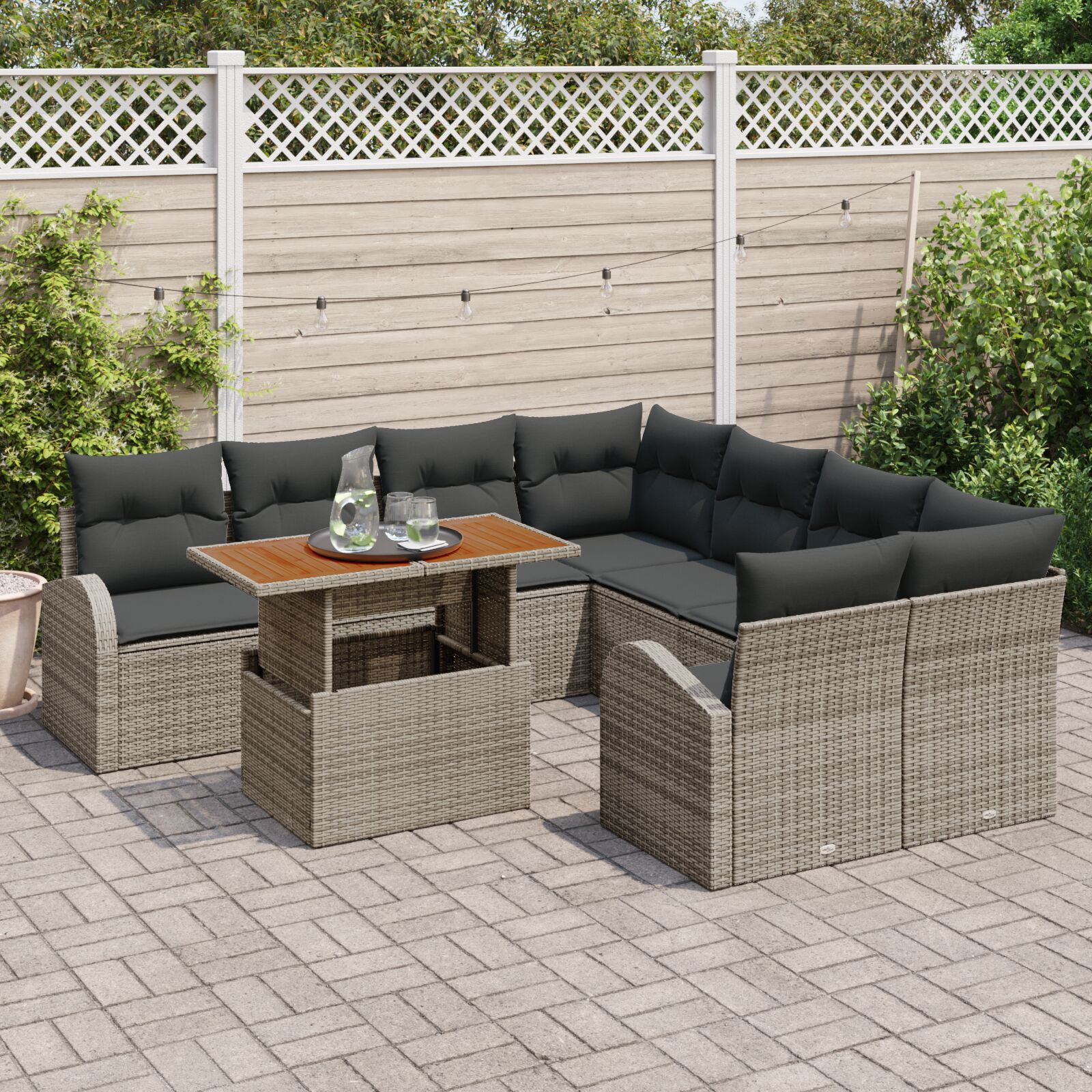 - Secțiuni Modulare: Mobilierul ăsta de grădină poate fi schimbat ca să se potrivească style-ului tău, perfect pentru relaxare sau mese. Cu multe opțiuni de configurare, e un adaos versatil la întâlnirile tale.