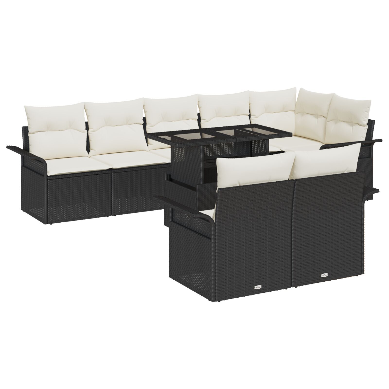 Set de canapea de grădină 9 piese cu perne Negru Poliratan GartenMobel Dekor