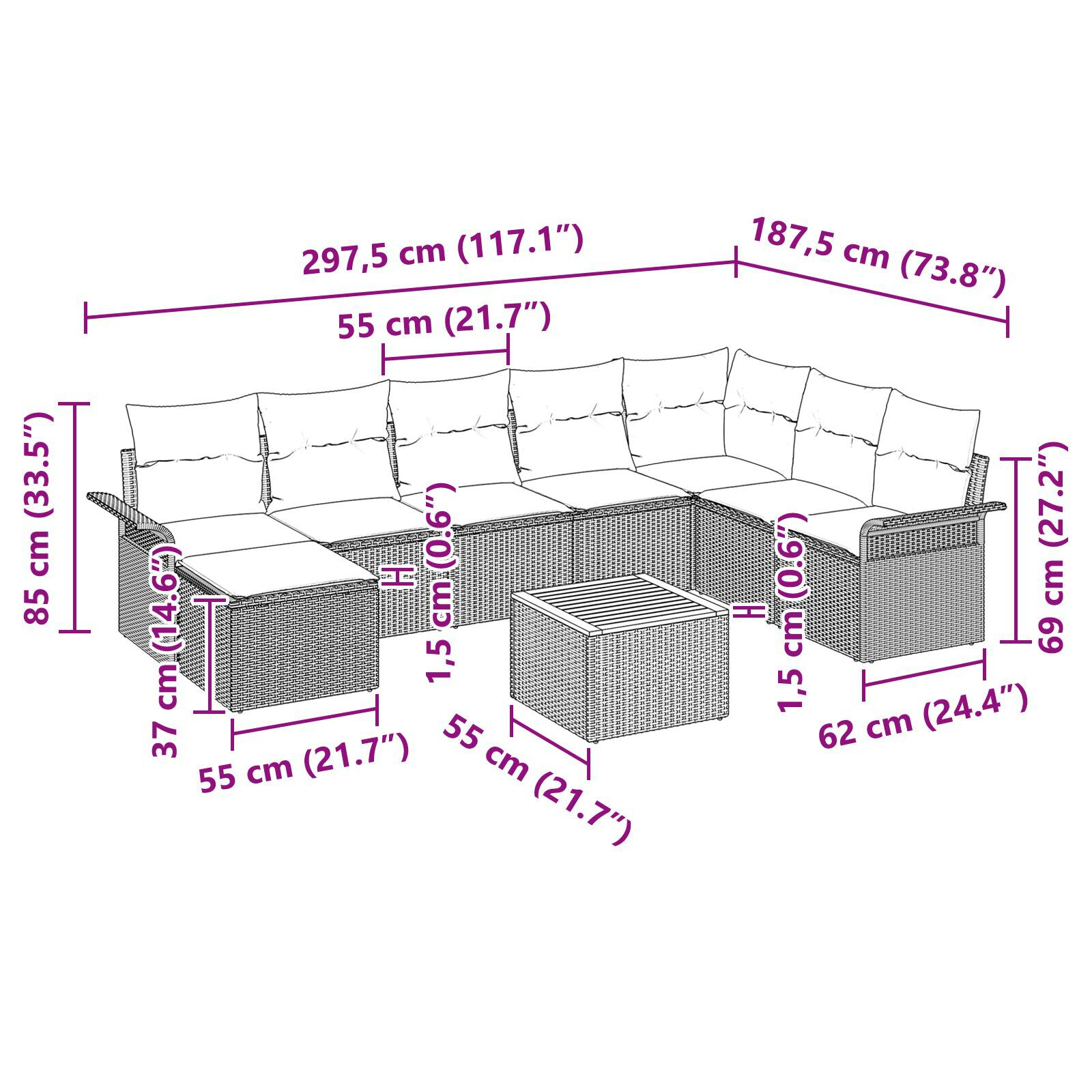 Setul ăsta de canapea pentru grădină cu 9 piese combină confortul cu stilul, fiind exact ce îți trebuie pentru orice loc afară. Designul elegant din ratan negru și crem, plus o masă de accent din lemn natural, arată genial și oferă multe locuri pentru întâlniri, așa că toată lumea se poate bucura de grădina sau balconul tău frumos.