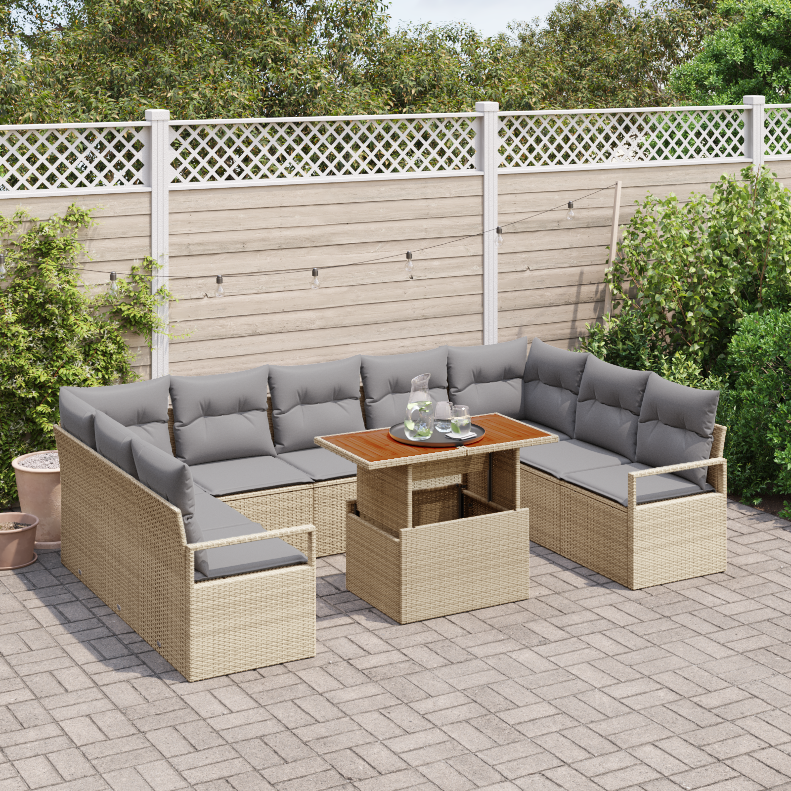Set de canapea de grădină cu 10 piese și perne Bej Ratan Poliester, Canapea de grădină cu 2 locuri și depozitare & perne Bej Ratan Poliester GartenMobel Dekor