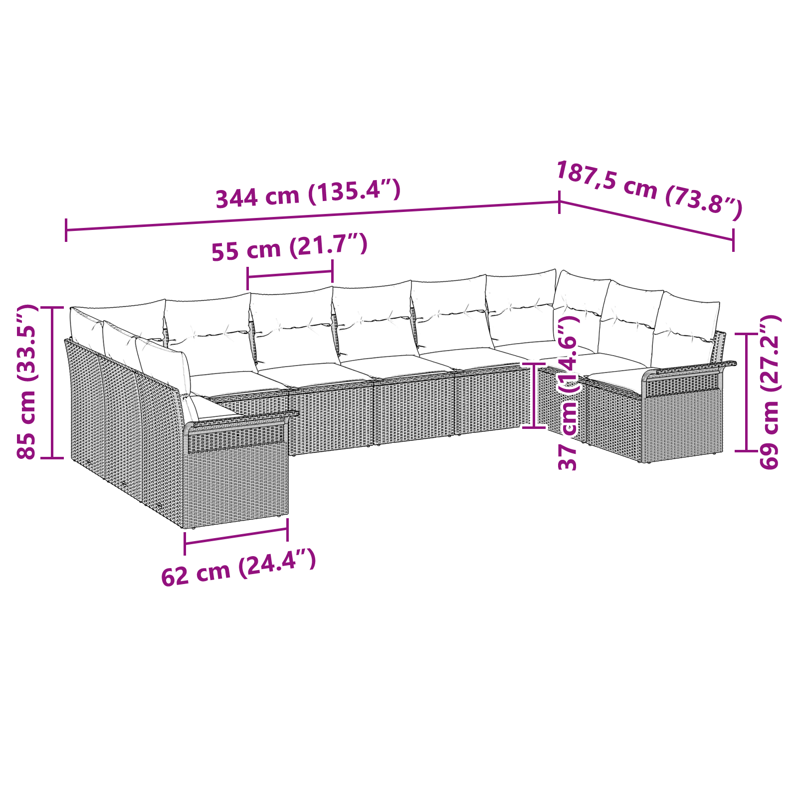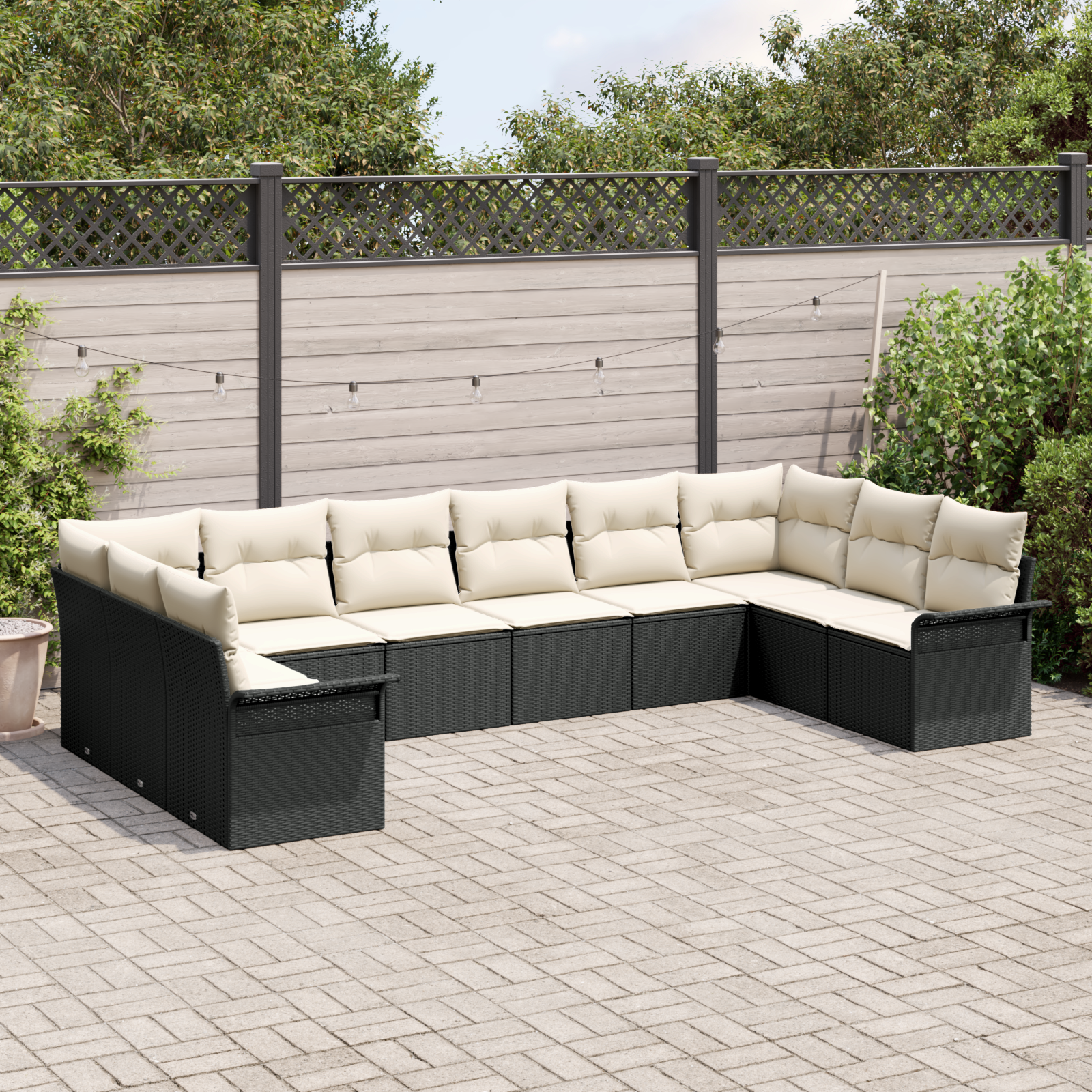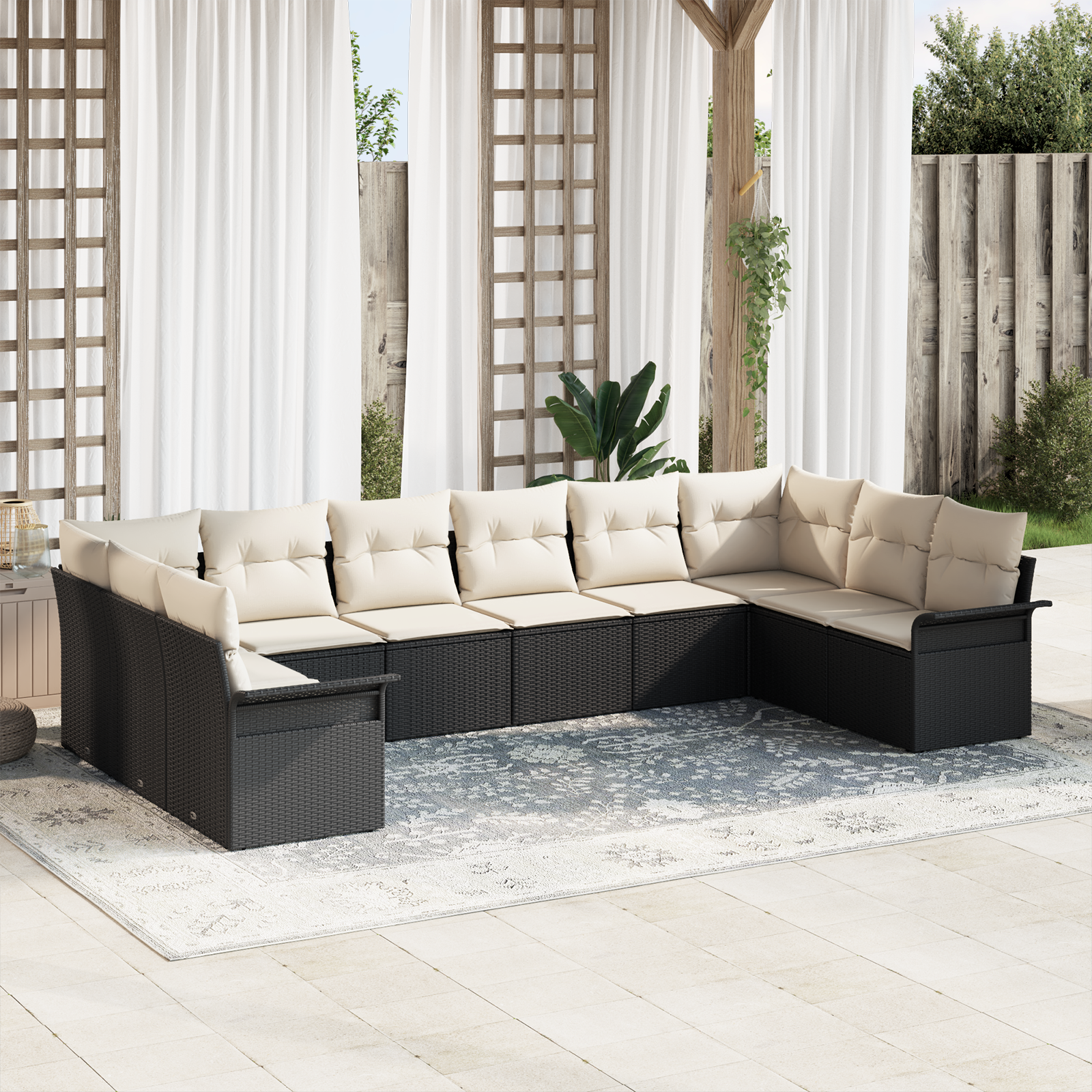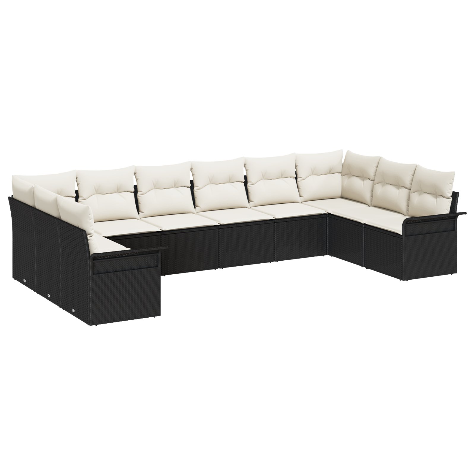Set de canapea de grădină cu 10 piese și perne Negru Poliratan GartenMobel Dekor