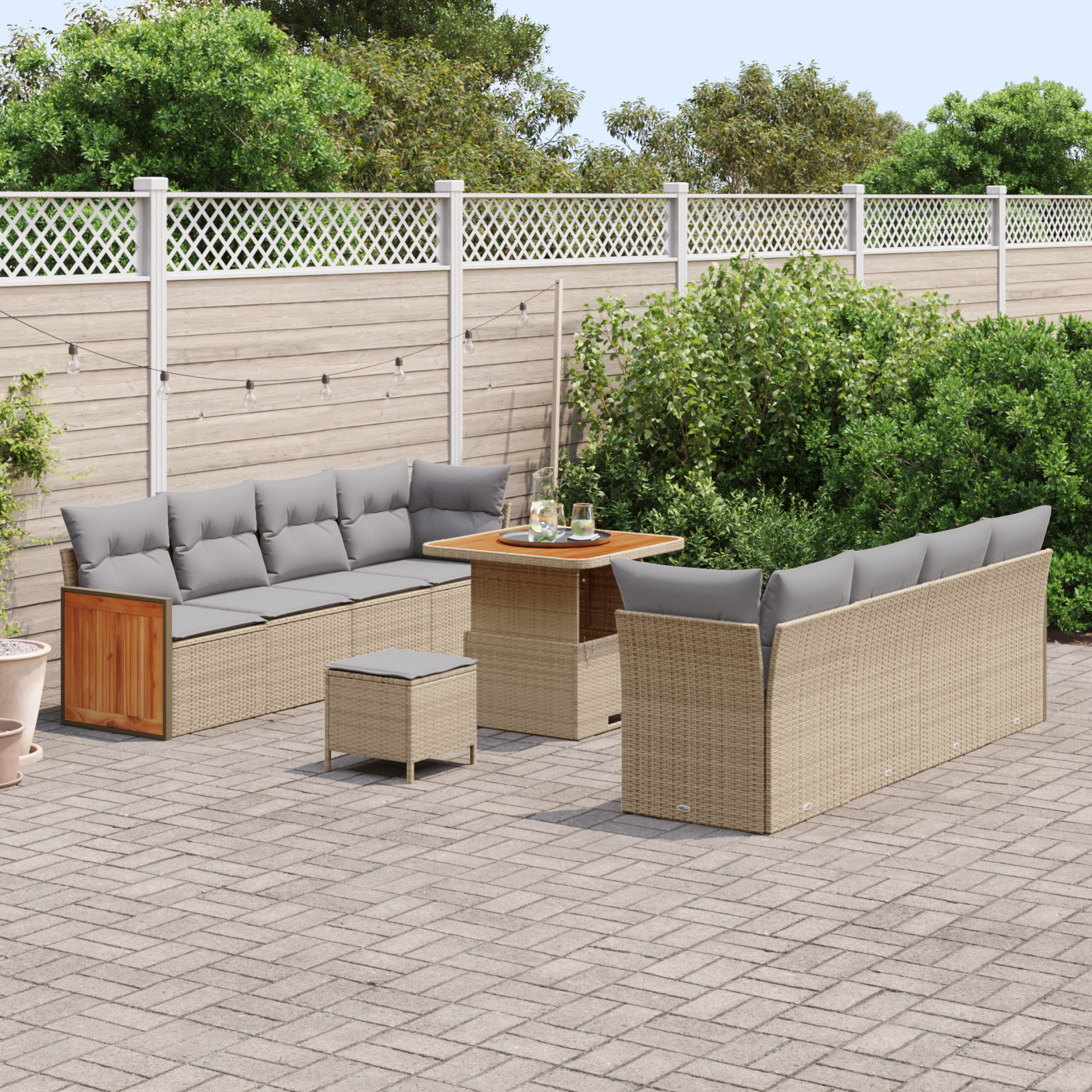 - Acest set de canapea de exterior are un design modular, cu multe opțiuni de configurare.