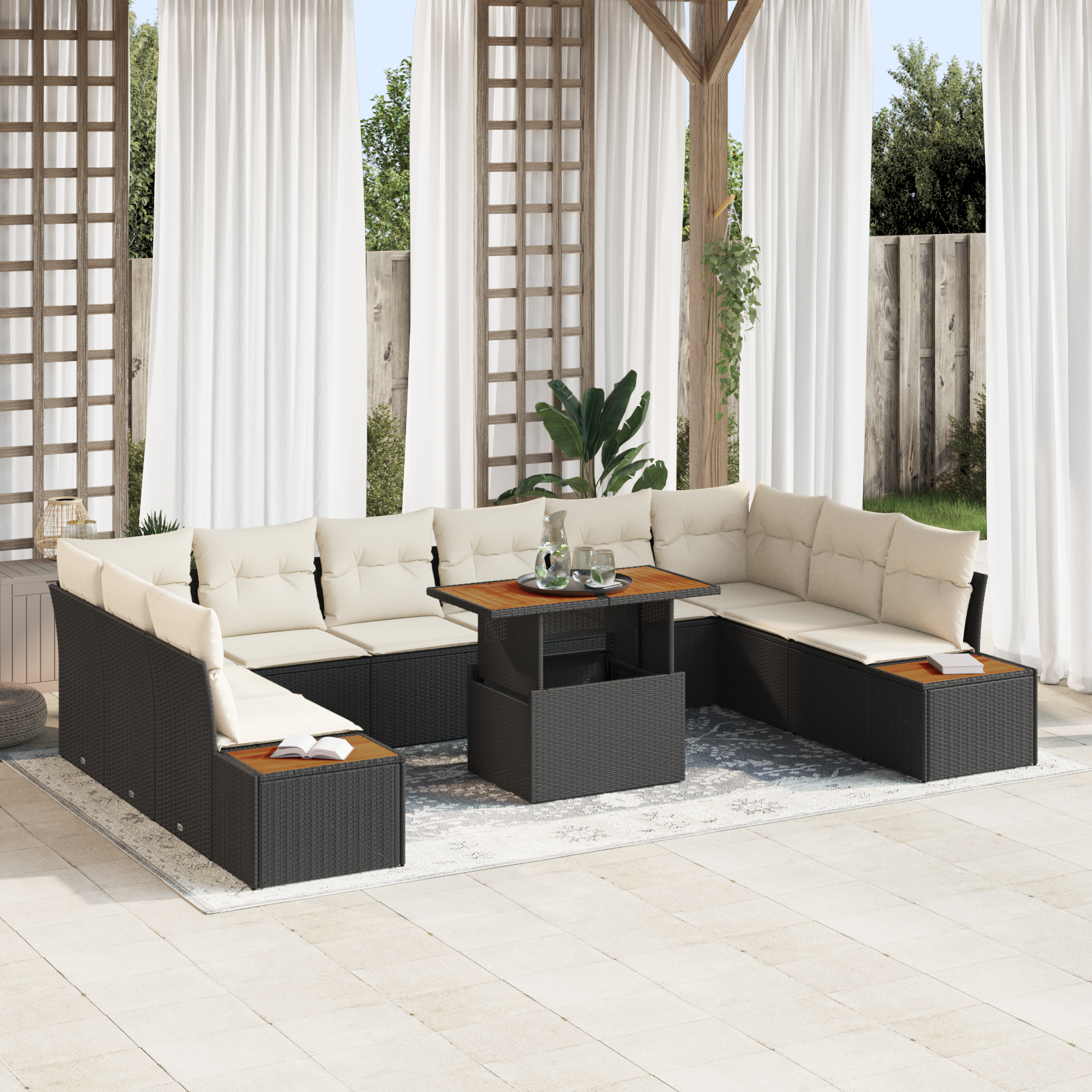 Set de canapea de grădină cu 11 piese cu perne Negru Poliratan, Canapea de grădină cu 2 locuri și perne Negru Poliratan GartenMobel Dekor