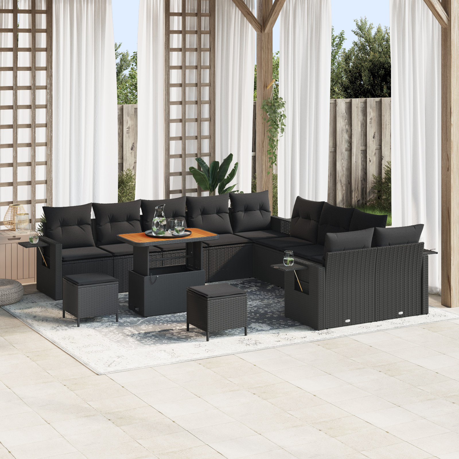 Set de canapea de grădină cu 13 piese cu perne - Ratan negru Acacia, Set de dining de grădină cu 3 piese cu perne - Ratan negru Acacia GartenMobel Dekor