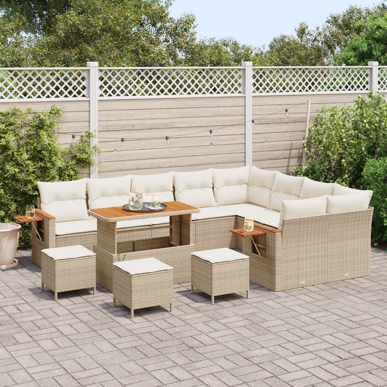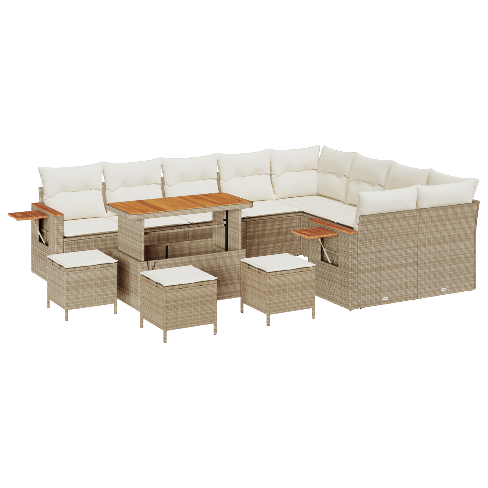 Set de canapea de grădină cu 13 piese și perne bej din ratan poli și lemn de acacia GartenMobel Dekor