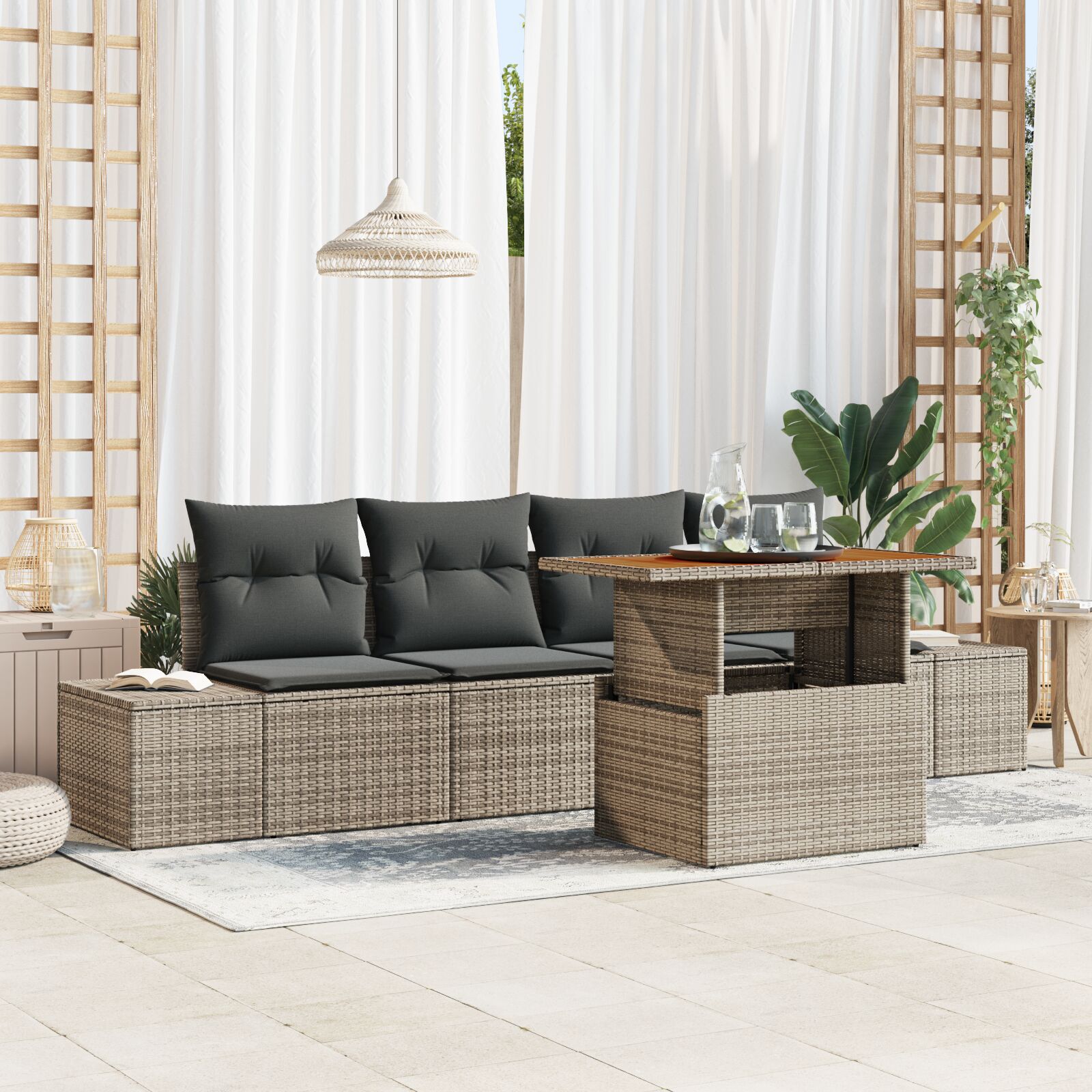 - Seating spațios: Cu loc pentru 4 persoane, acest set este perfect pentru relaxare cu prietenii și familia.