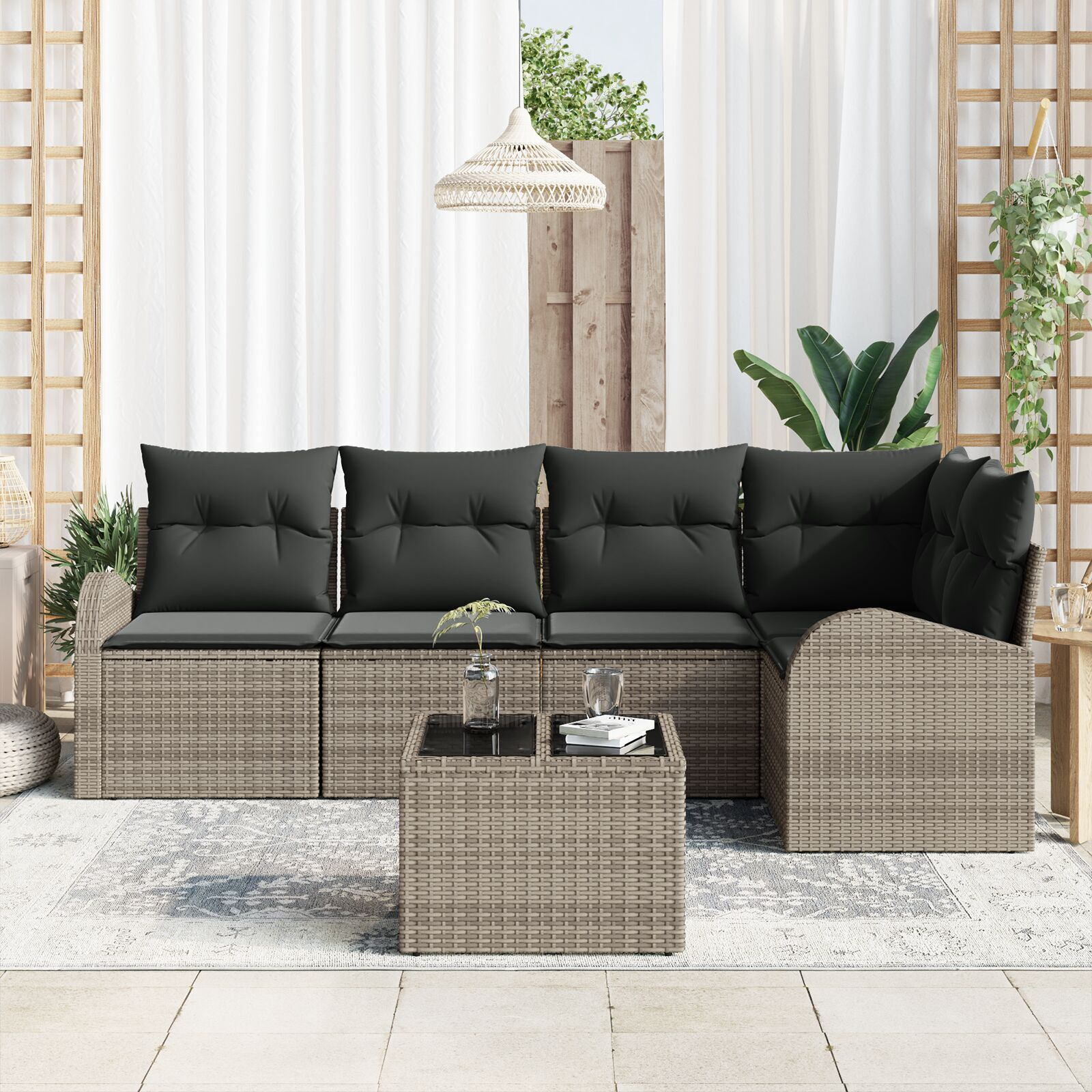 Set de Canapea de Grădină cu 5 Piese cu Perne Ratan Polimer Negru, Canapea de Grădină cu 2 Locuri cu Spațiu de Depozitare și Perne Ratan Polimer Gri GartenMobel Dekor