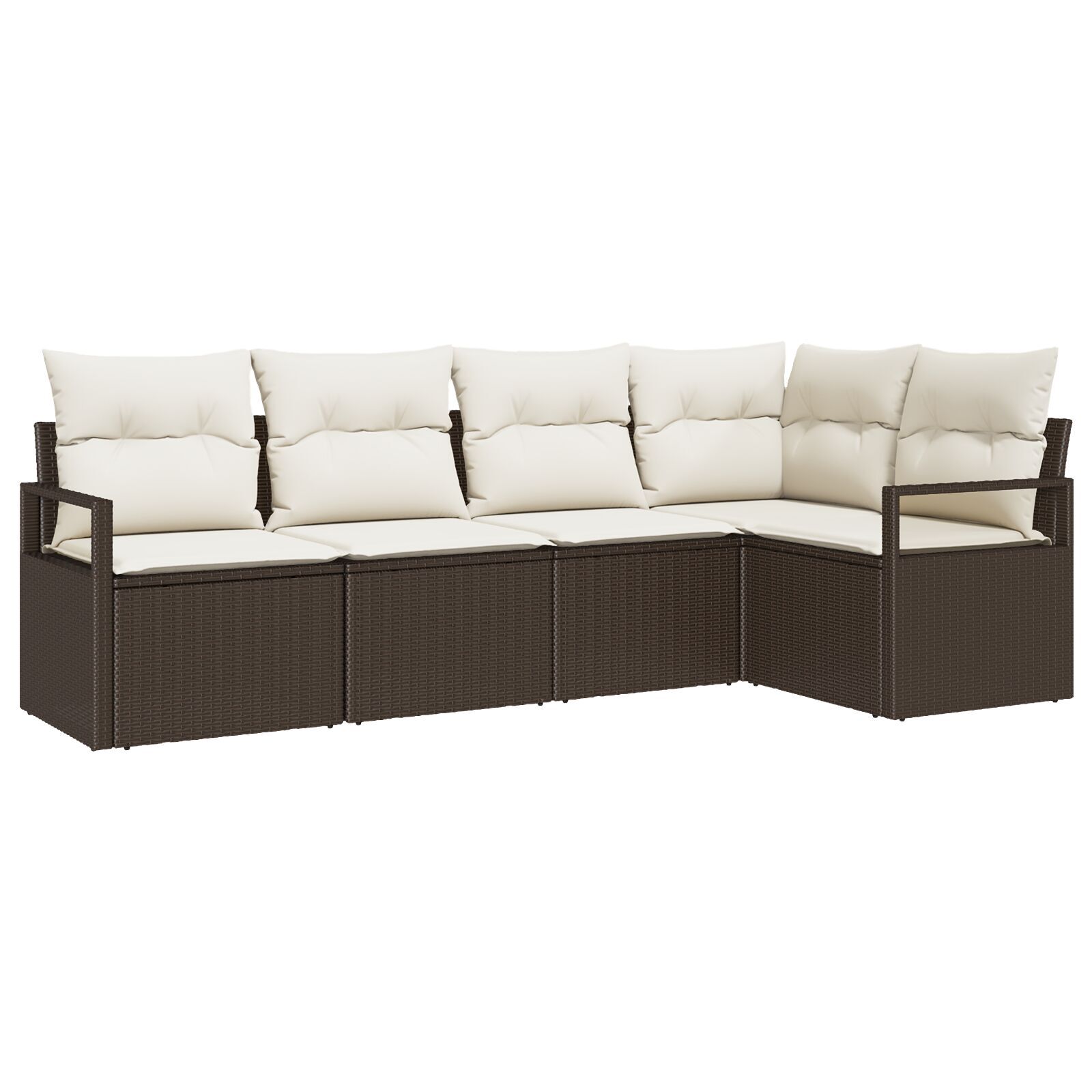 Acest set de canapele exterioare combină un look modern cu utilitatea, făcându-l o piesă grozavă pentru orice grădină sau balcon. Culorile maro și alb dau o vibrație elegantă și oferă un spațiu confortabil pentru până la cinci persoane, asigurând relaxarea în aer liber.