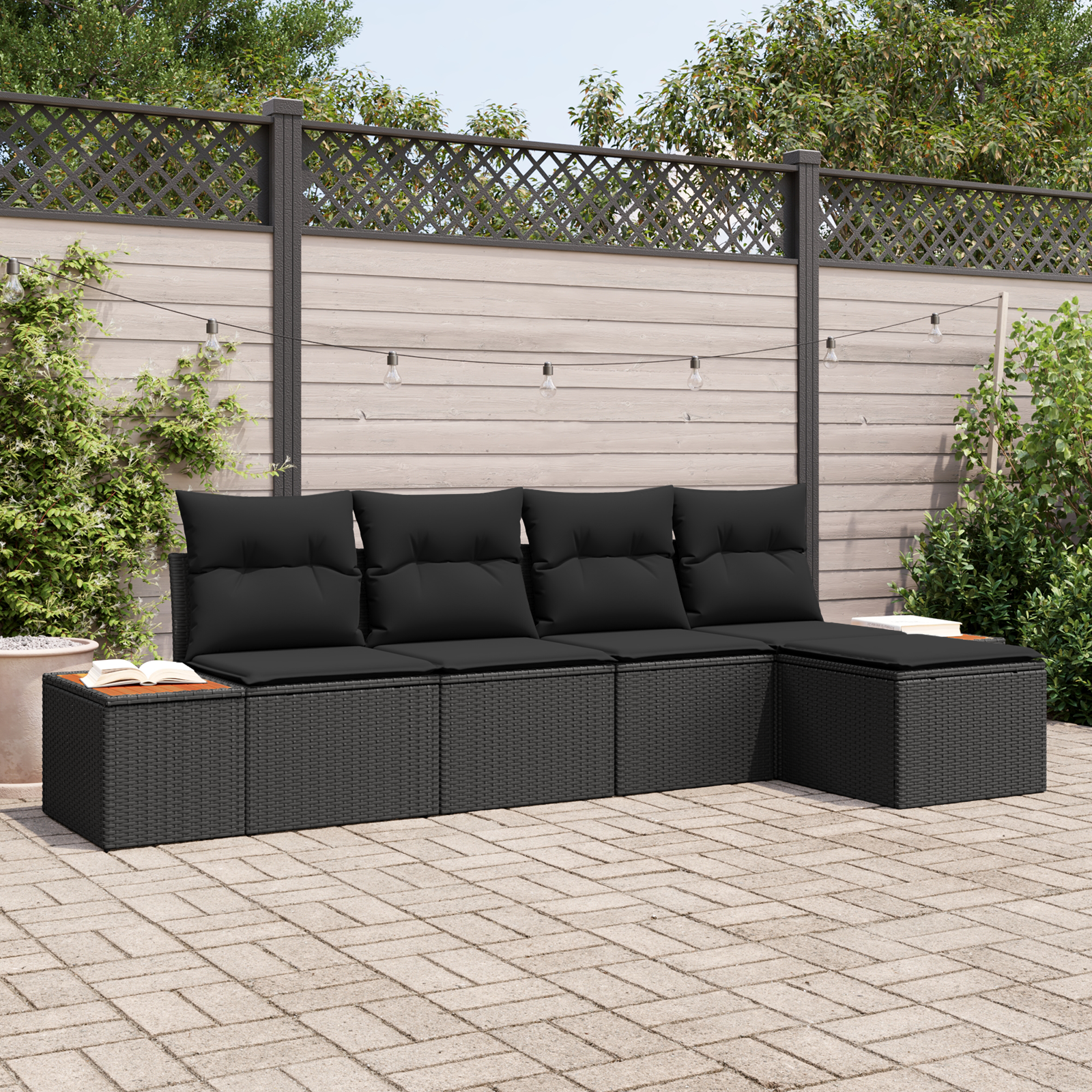 Set de Canapea de Grădină cu 5 Piese și Perne Negru Poliratan Acacia GartenMobel Dekor