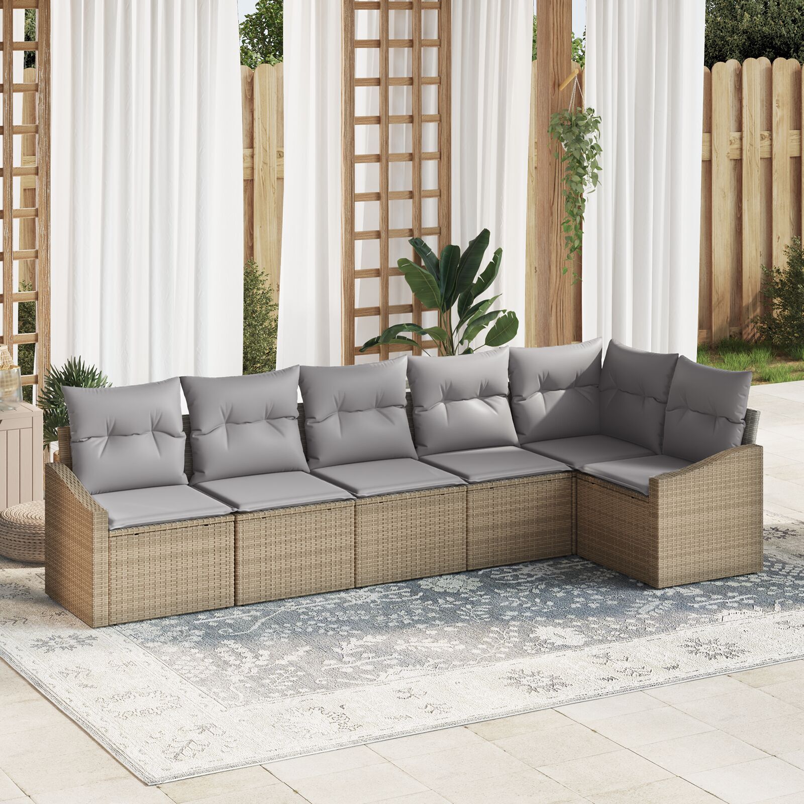 Set de canapea de grădină cu 6 piese și perne bej din ratan poli GartenMobel Dekor