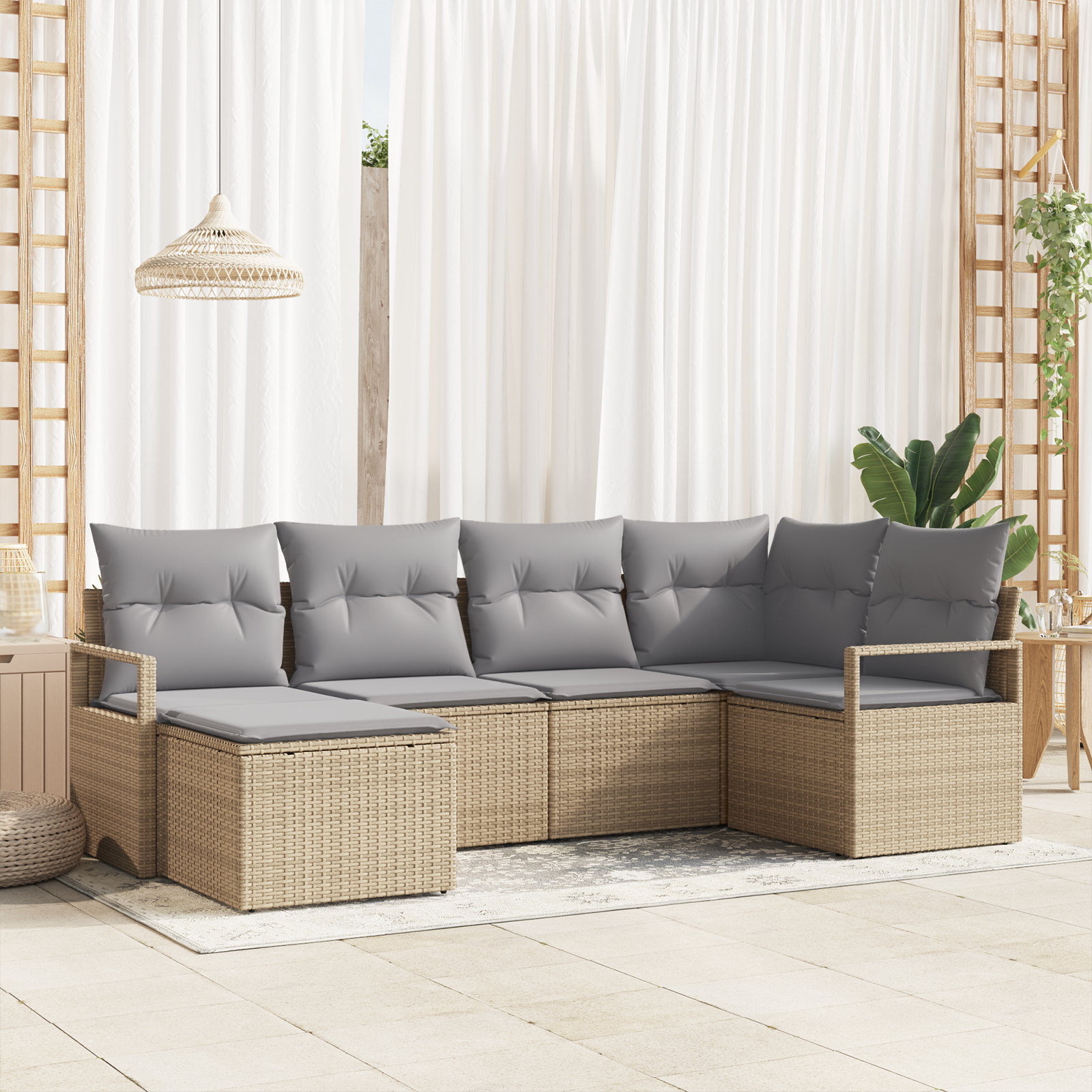 Set de canapea de grădină cu 6 piese și perne Bej Ratan Poli, Canapea de grădină cu 2 locuri și perne Bej Ratan Poli GartenMobel Dekor