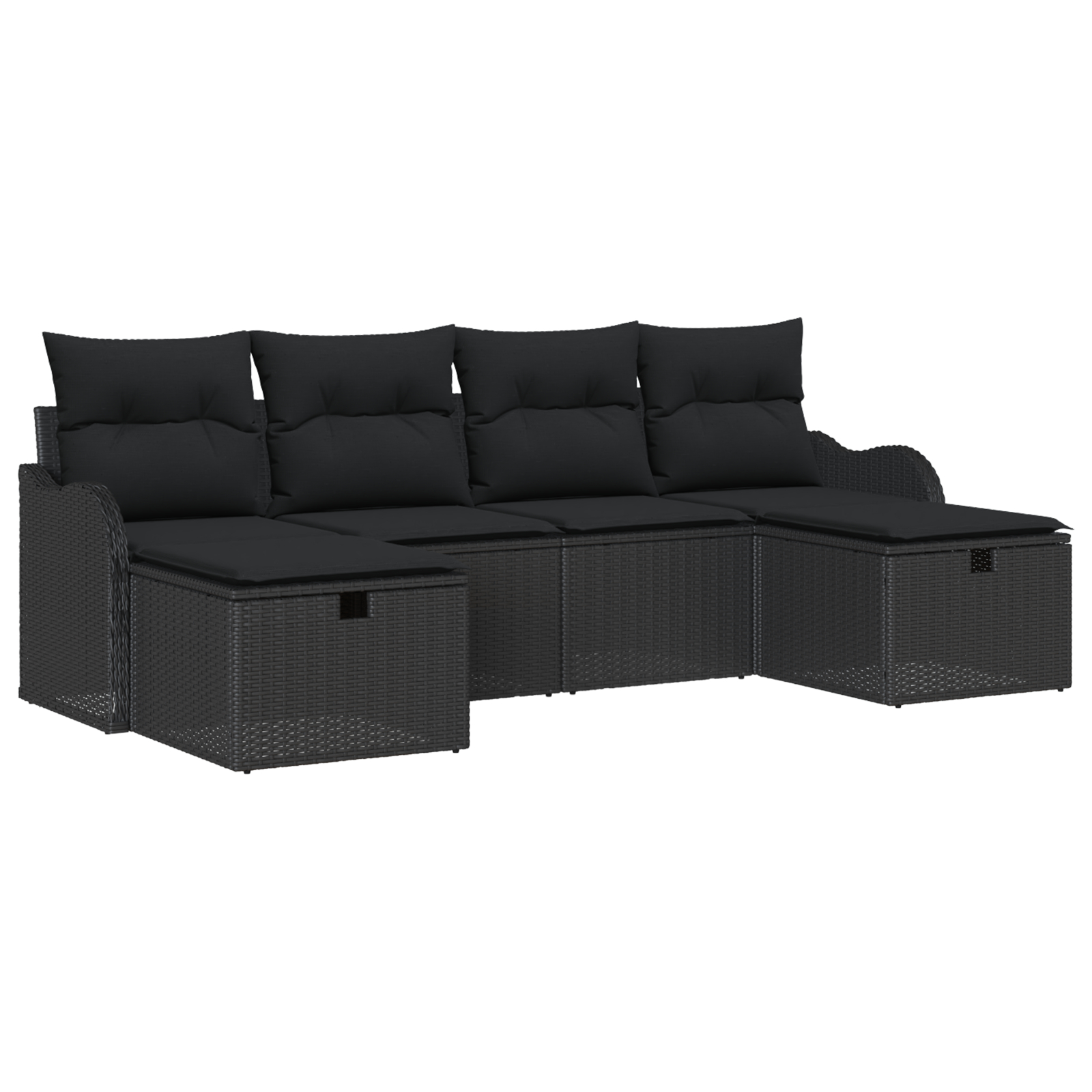 Set de canapea de grădină cu 6 piese și perne din ratan poli negru, Canapea de grădină cu 2 locuri și perne din ratan poli negru GartenMobel Dekor