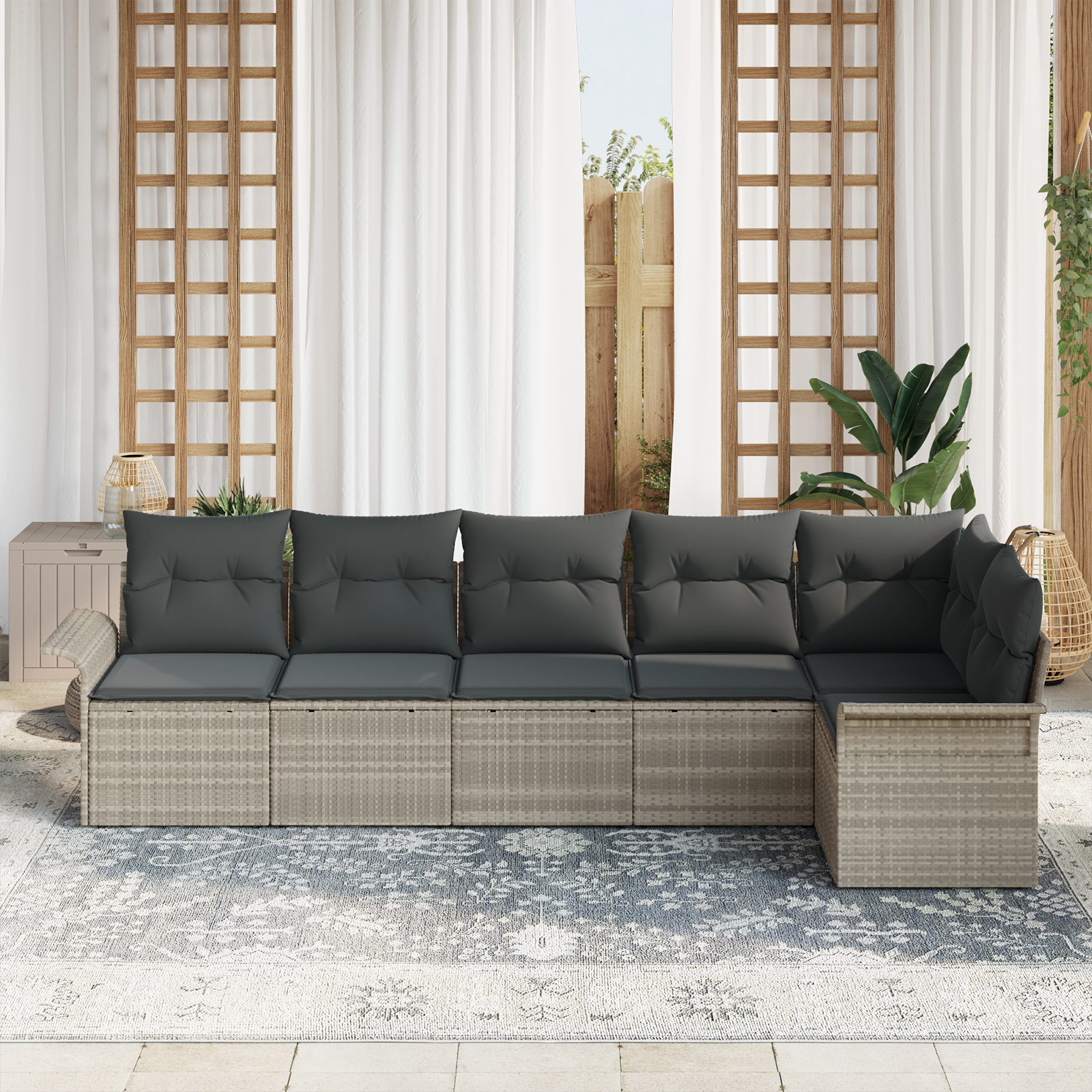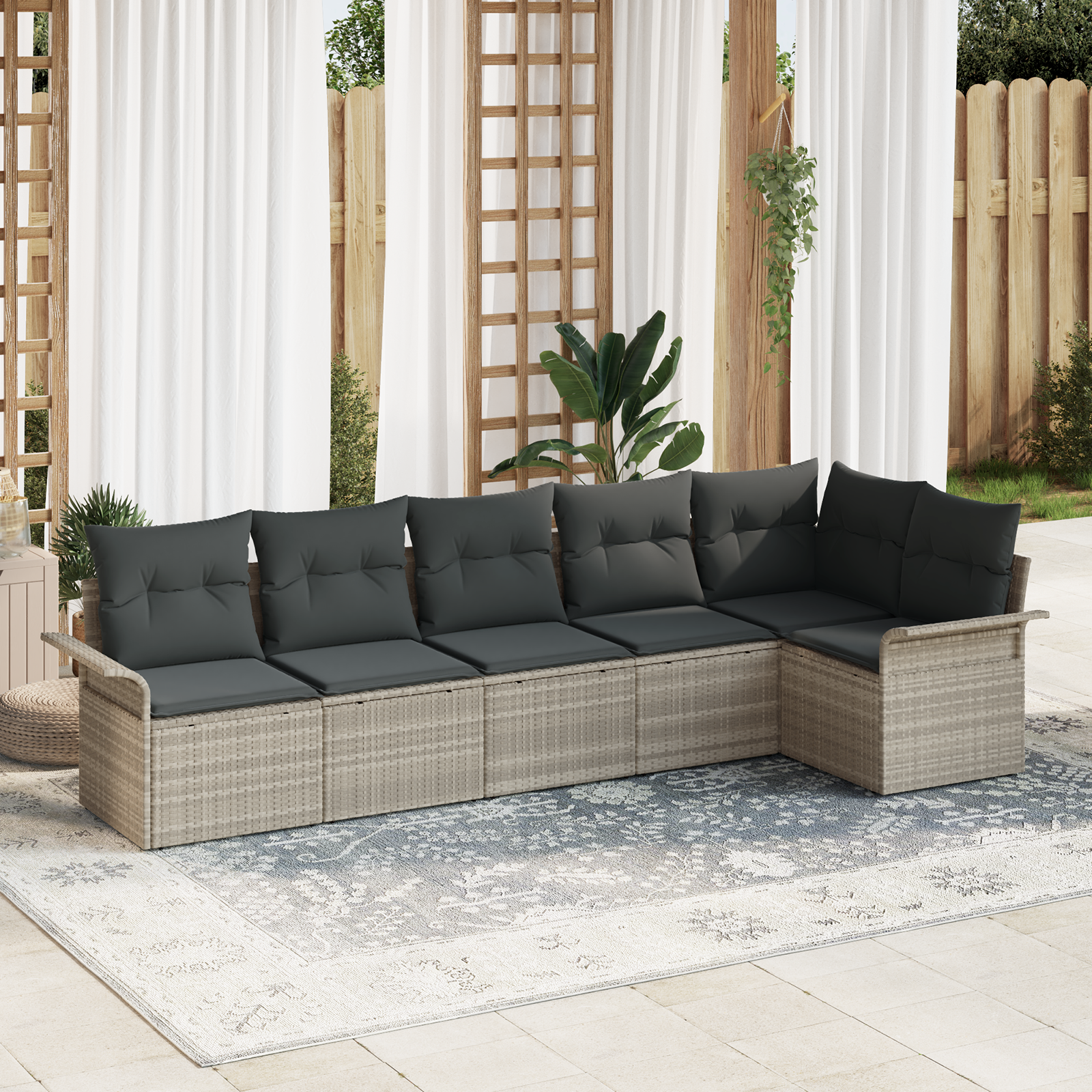 Set de canapea de grădină cu 6 piese și perne gri deschis din poliratan GartenMobel Dekor