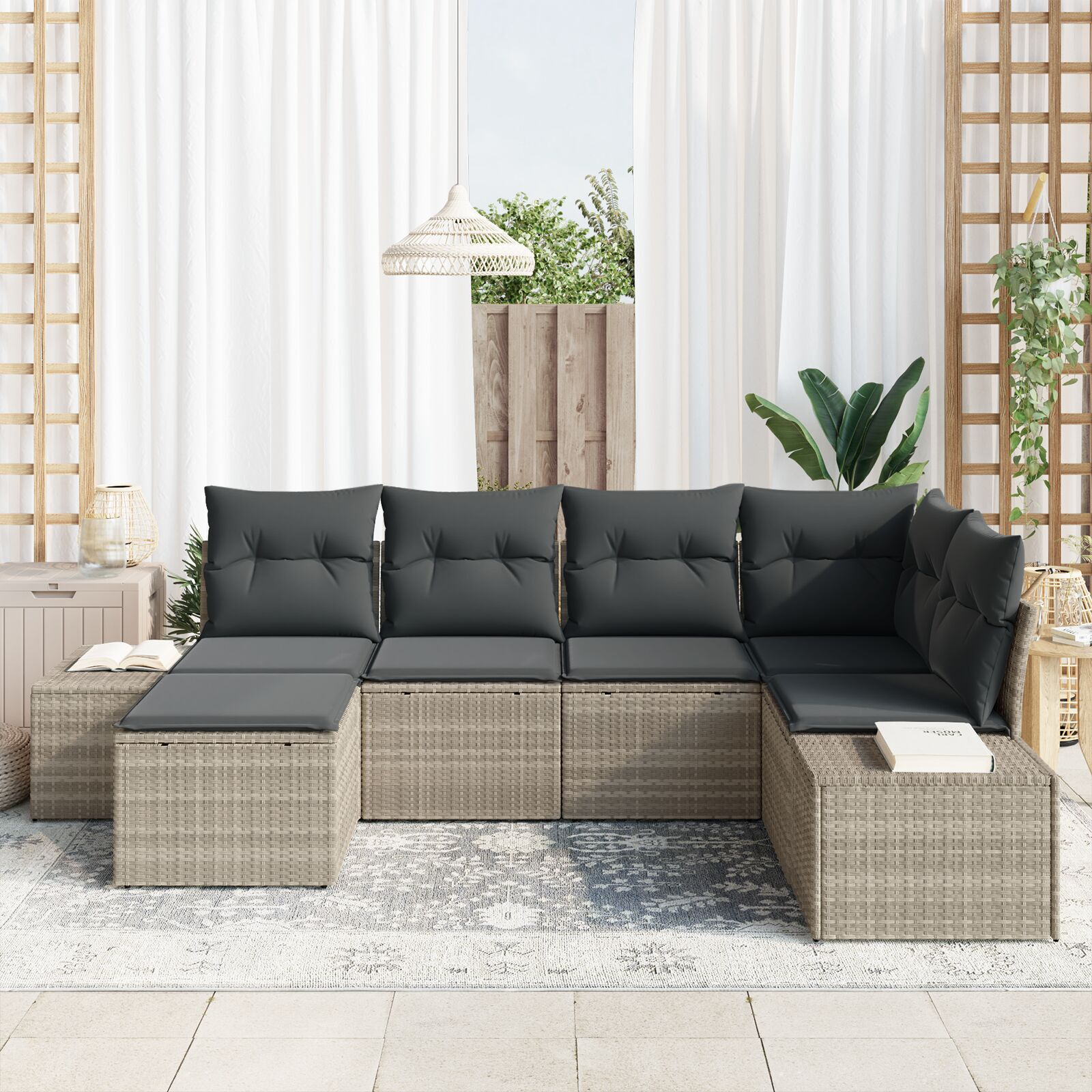 Set de canapea de grădină cu 6 piese și perne gri deschis din ratan polimeric GartenMobel Dekor