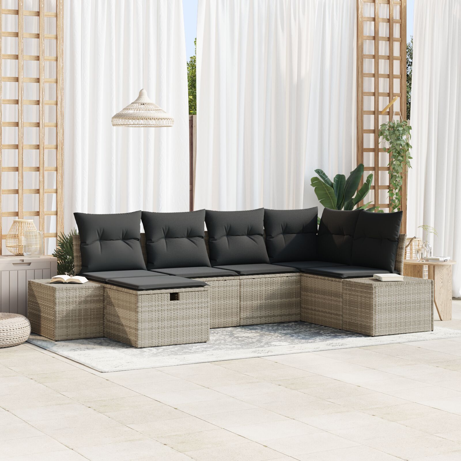 Set de canapea de grădină cu 6 piese și perne Gri deschis Poliratan GartenMobel Dekor