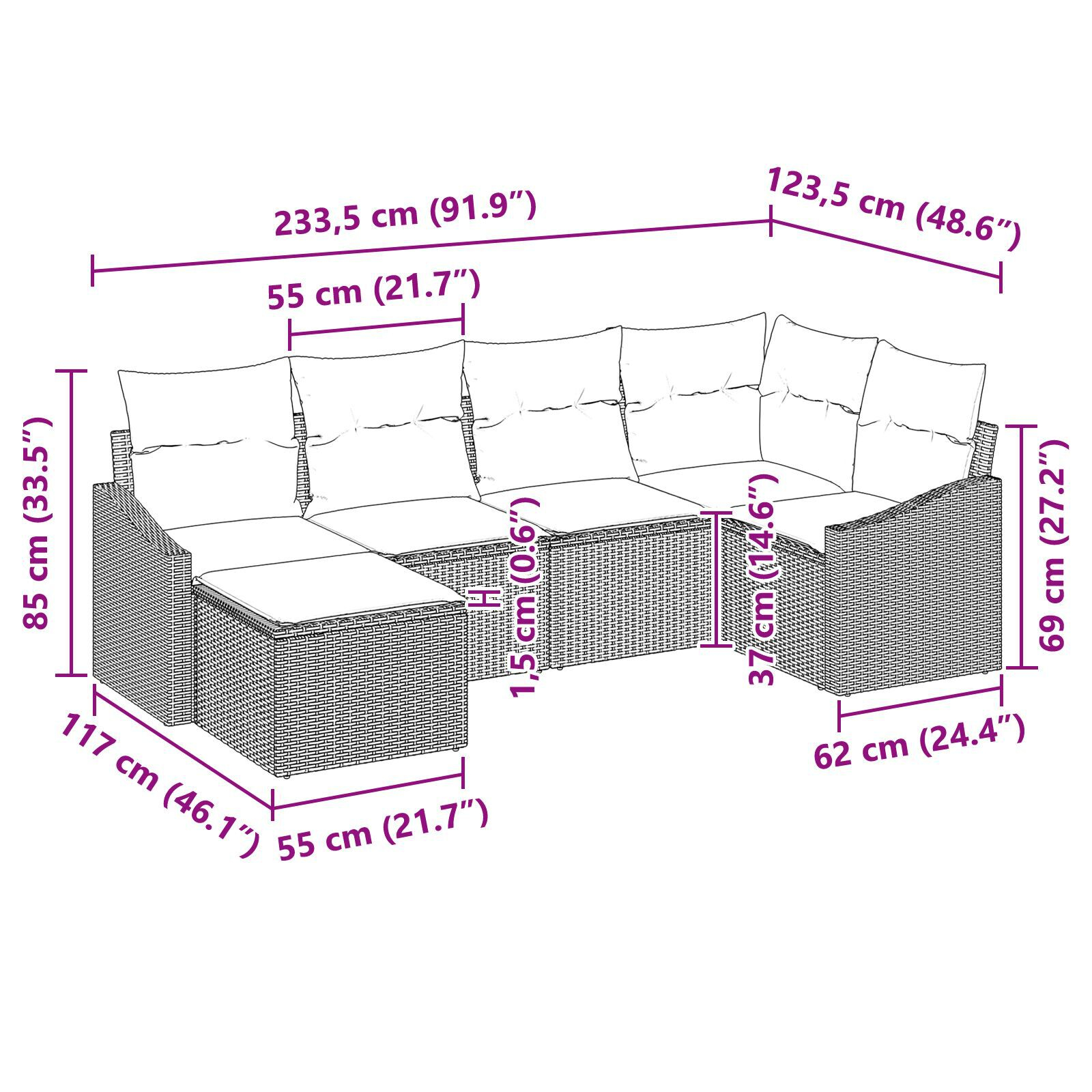 Set de canapea de grădină cu 6 piese și perne negre din ratan poli GartenMobel Dekor