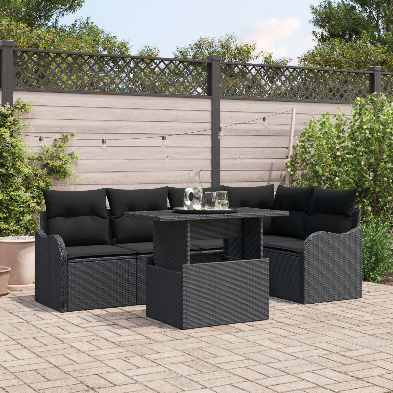 Set de canapea de grădină cu 6 piese și perne Negru Poliratan, Canapea de grădină cu 2 locuri și storage & perne Negru Poliratan GartenMobel Dekor