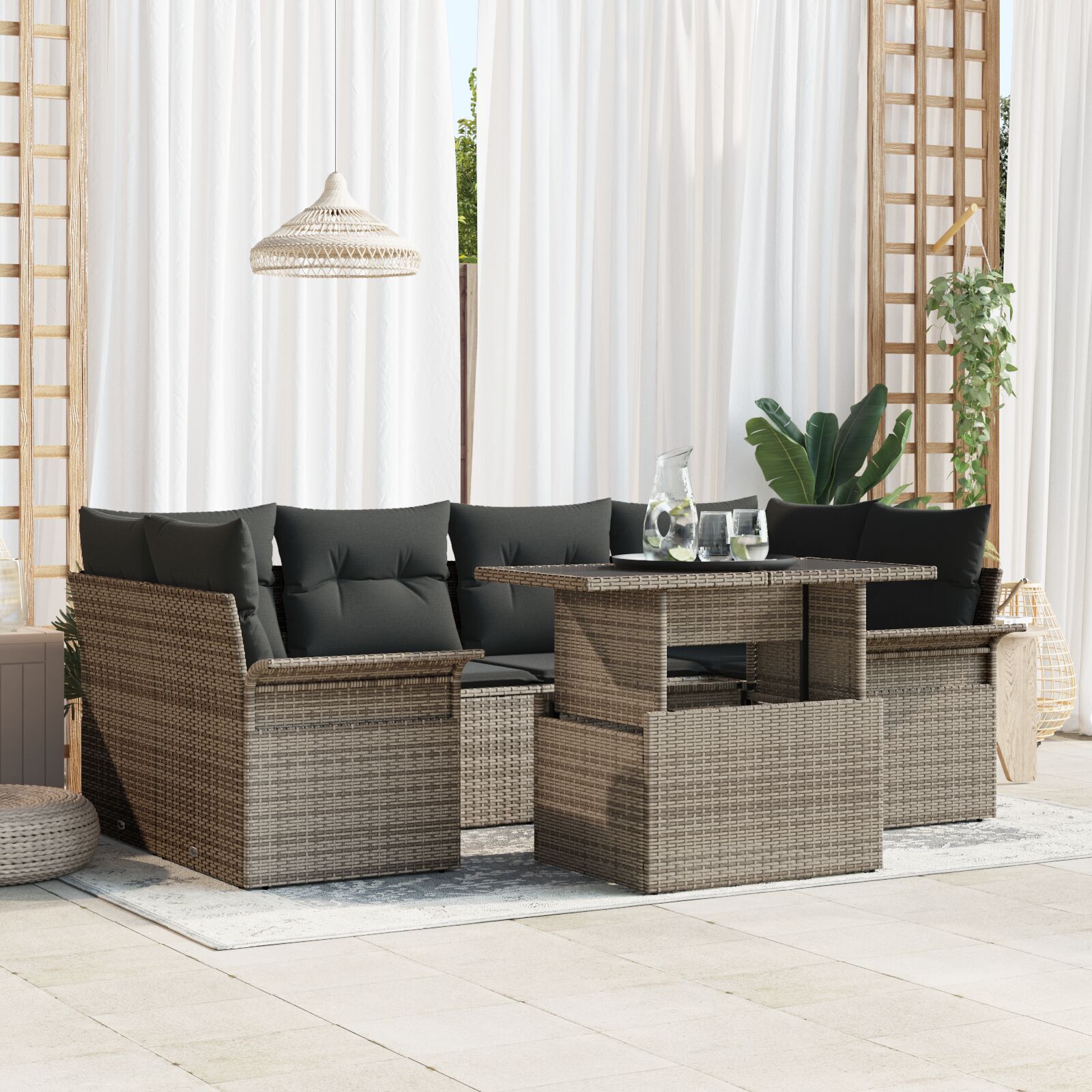 Set de Canapea de Grădină cu 7 Piese cu Perne Gri din Ratan Polietilenă GartenMobel Dekor