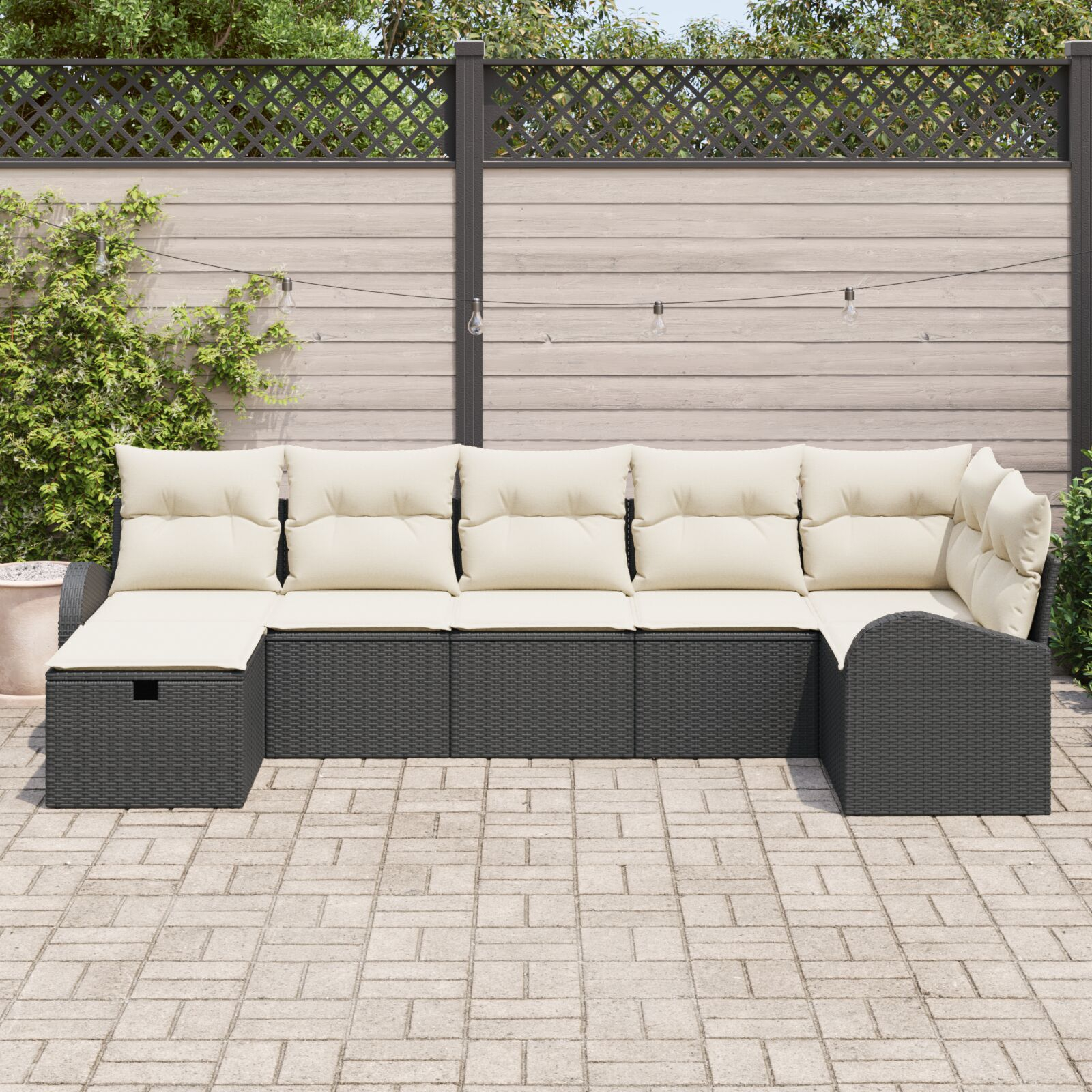 Set de canapea de grădină cu 7 piese cu perne negre din ratan poli GartenMobel Dekor