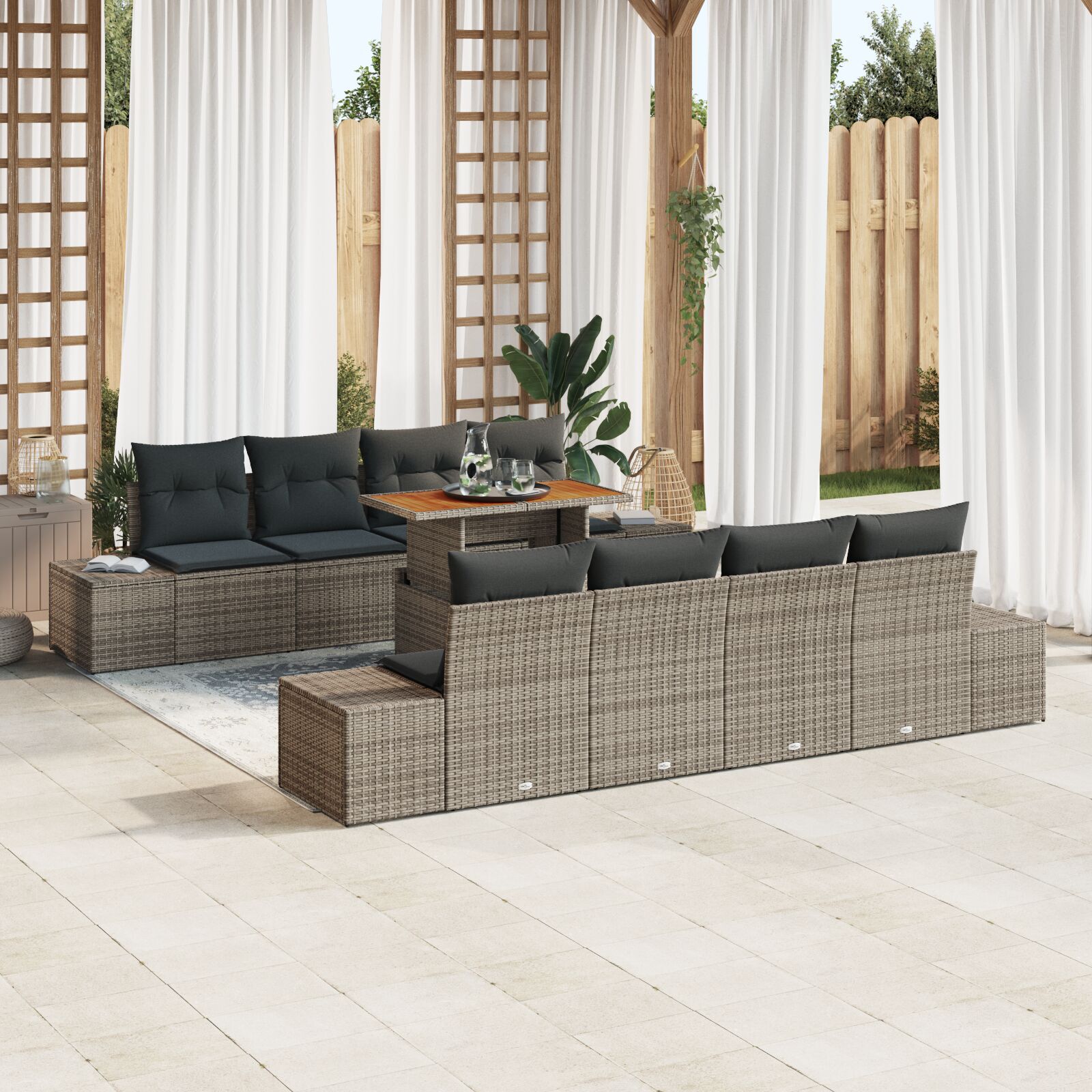 Set de canapea de grădină cu 7 piese și perne Gri Ratan Poli GartenMobel Dekor