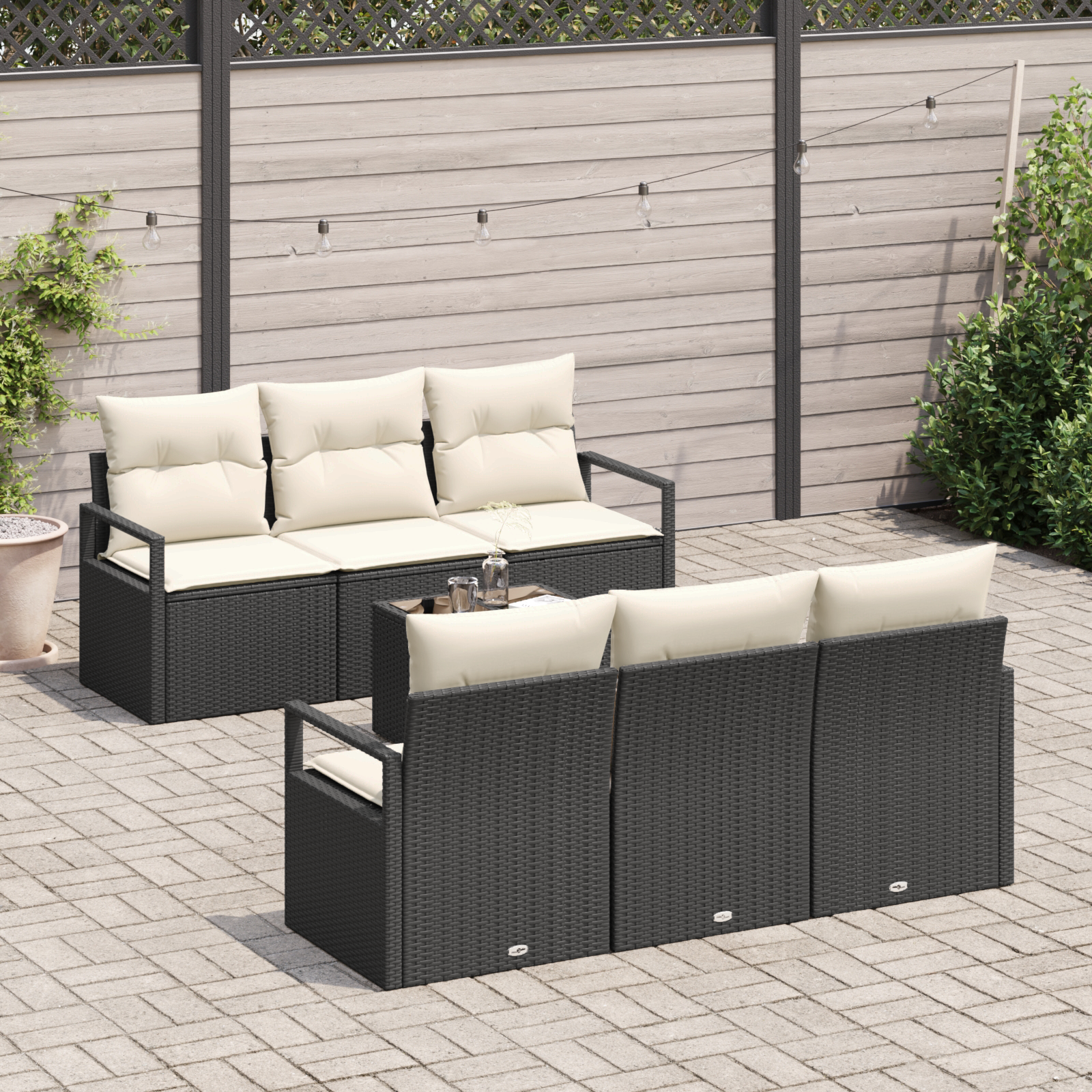 Set de canapea de grădină cu 7 piese și perne negre din ratan poliester, Canapea de grădină cu 2 locuri și depozitare & perne negre din ratan poliester GartenMobel Dekor