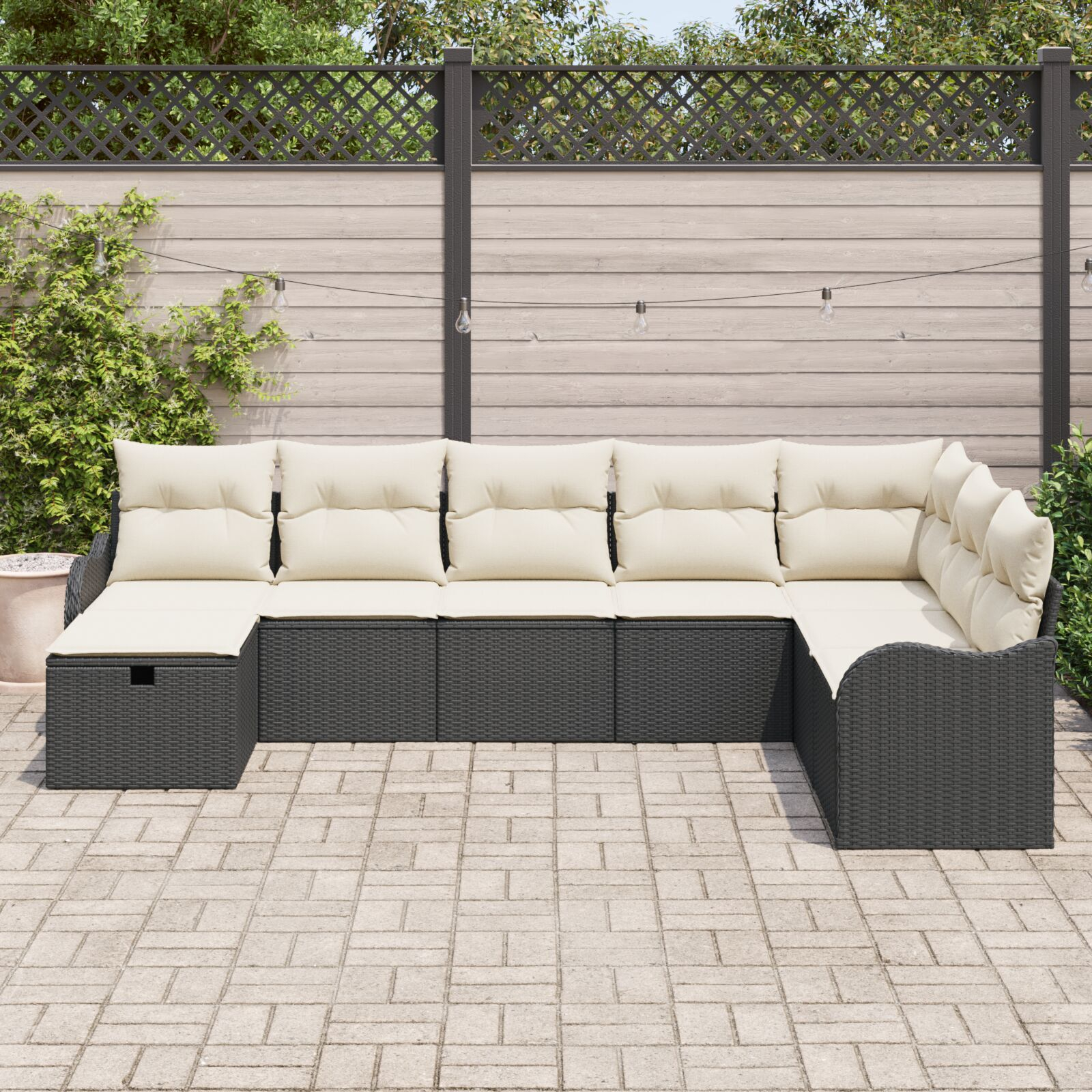 - Design Modular: Canapeaua se poate reconfigura ușor ca să se potrivească în spațiul tău, făcând aranjamente personalizate care se potrivesc perfect cu patio-ul sau grădina ta.