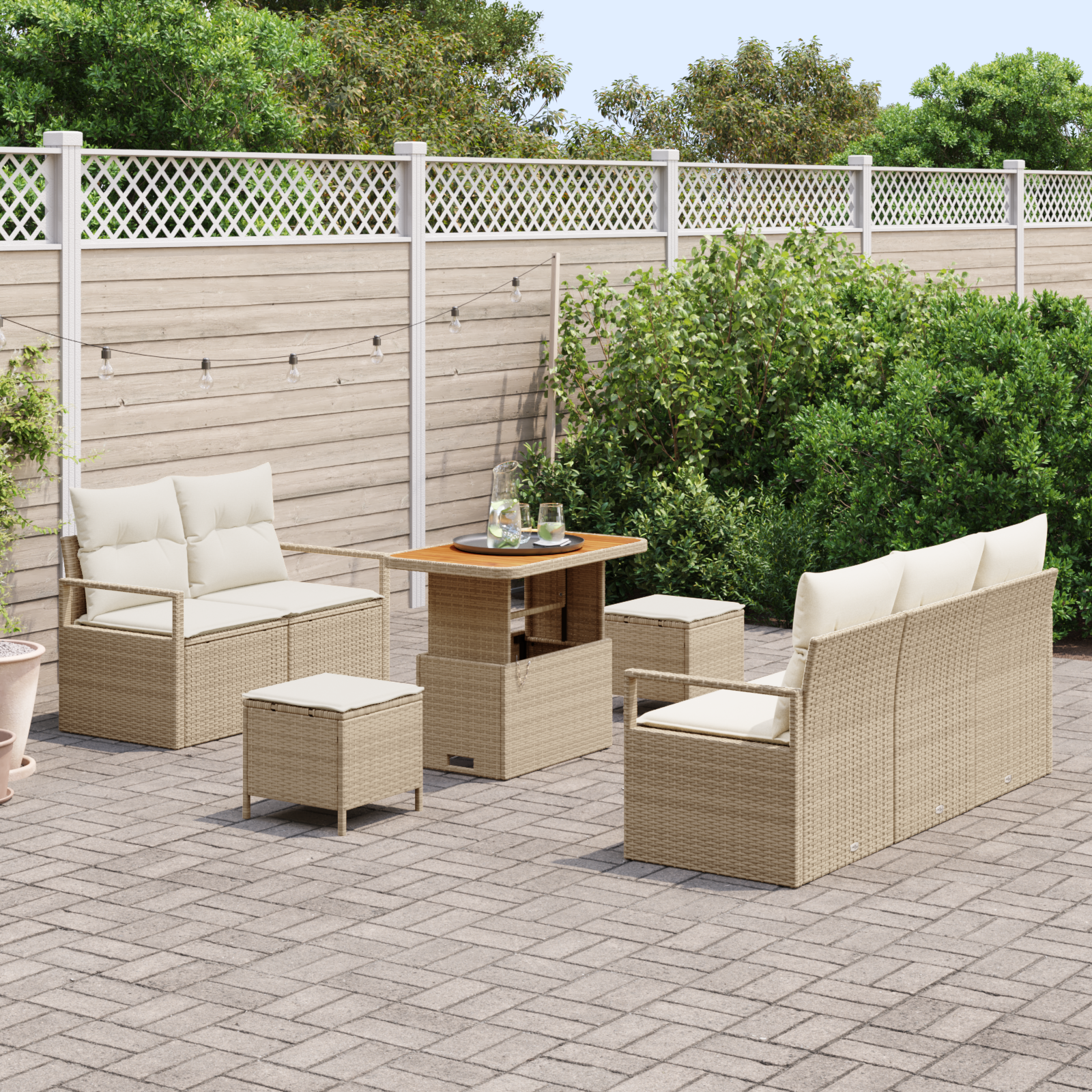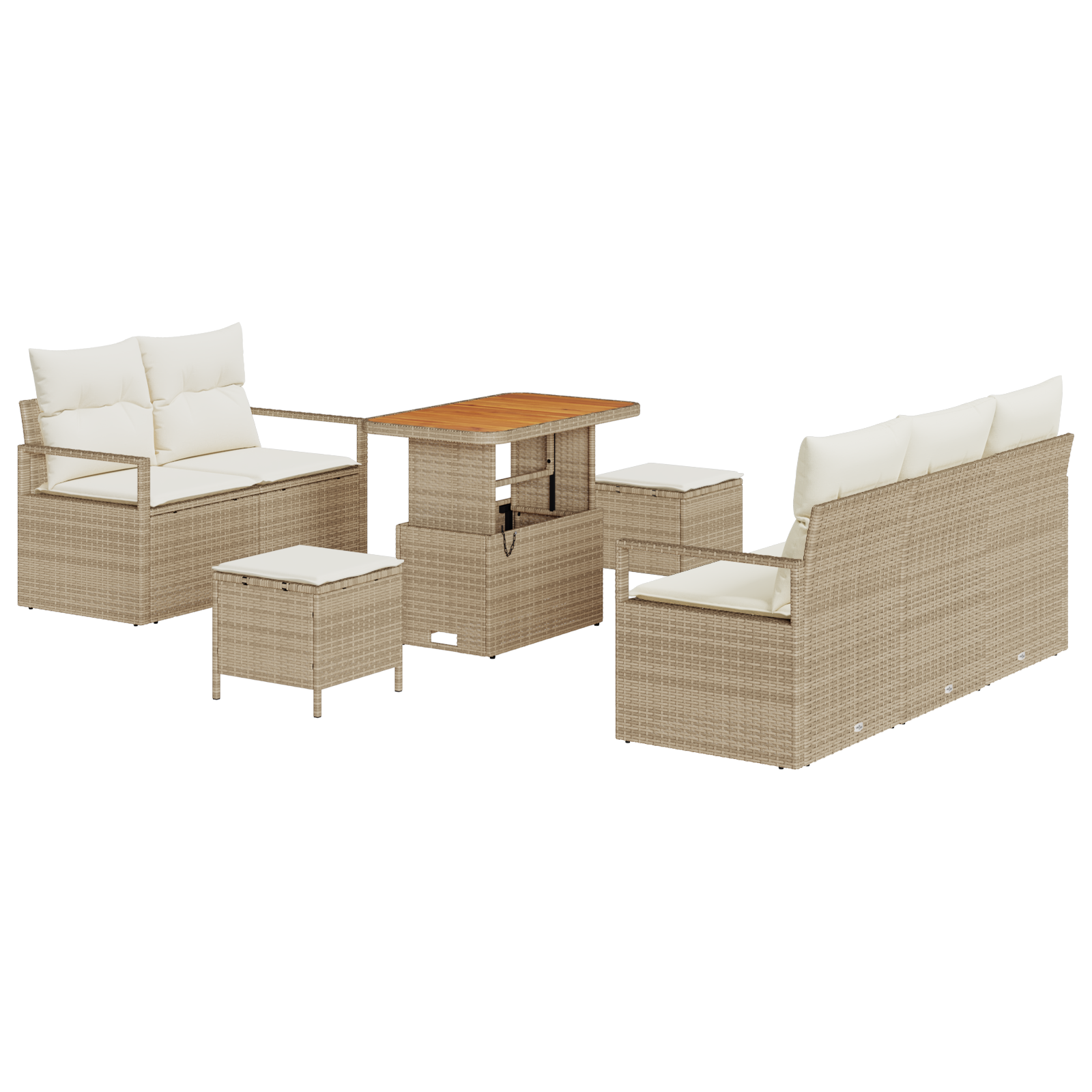 Set de canapea de grădină cu 8 piese și perne Bej Poliratan Acacia GartenMobel Dekor