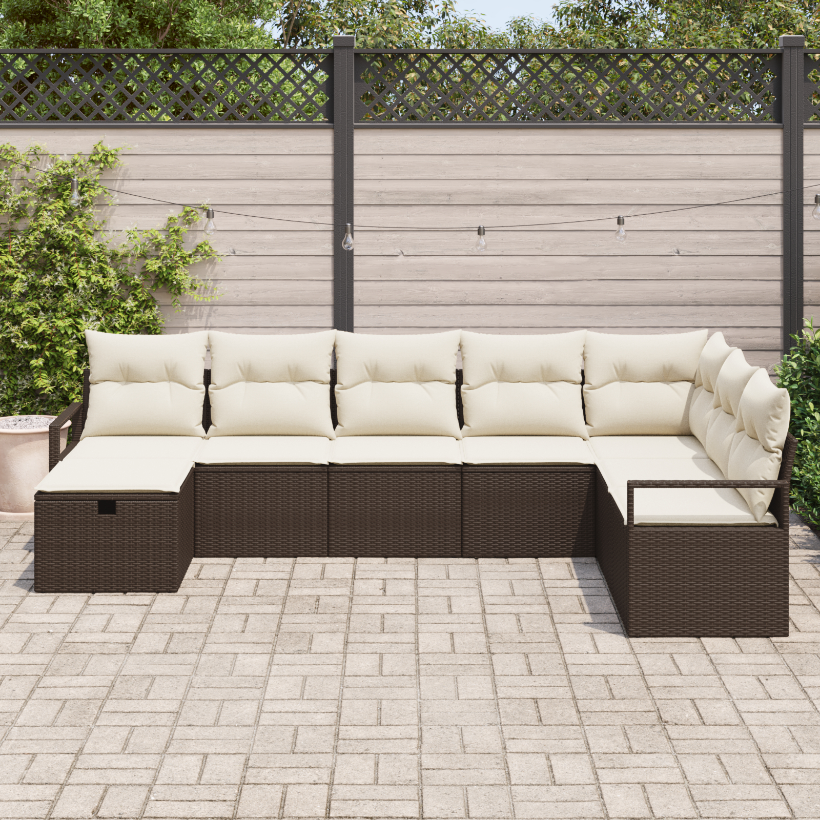 Set de canapea de grădină cu 8 piese și perne din poli ratan maro, Canapea de grădină cu 2 locuri și perne din poli ratan maro GartenMobel Dekor