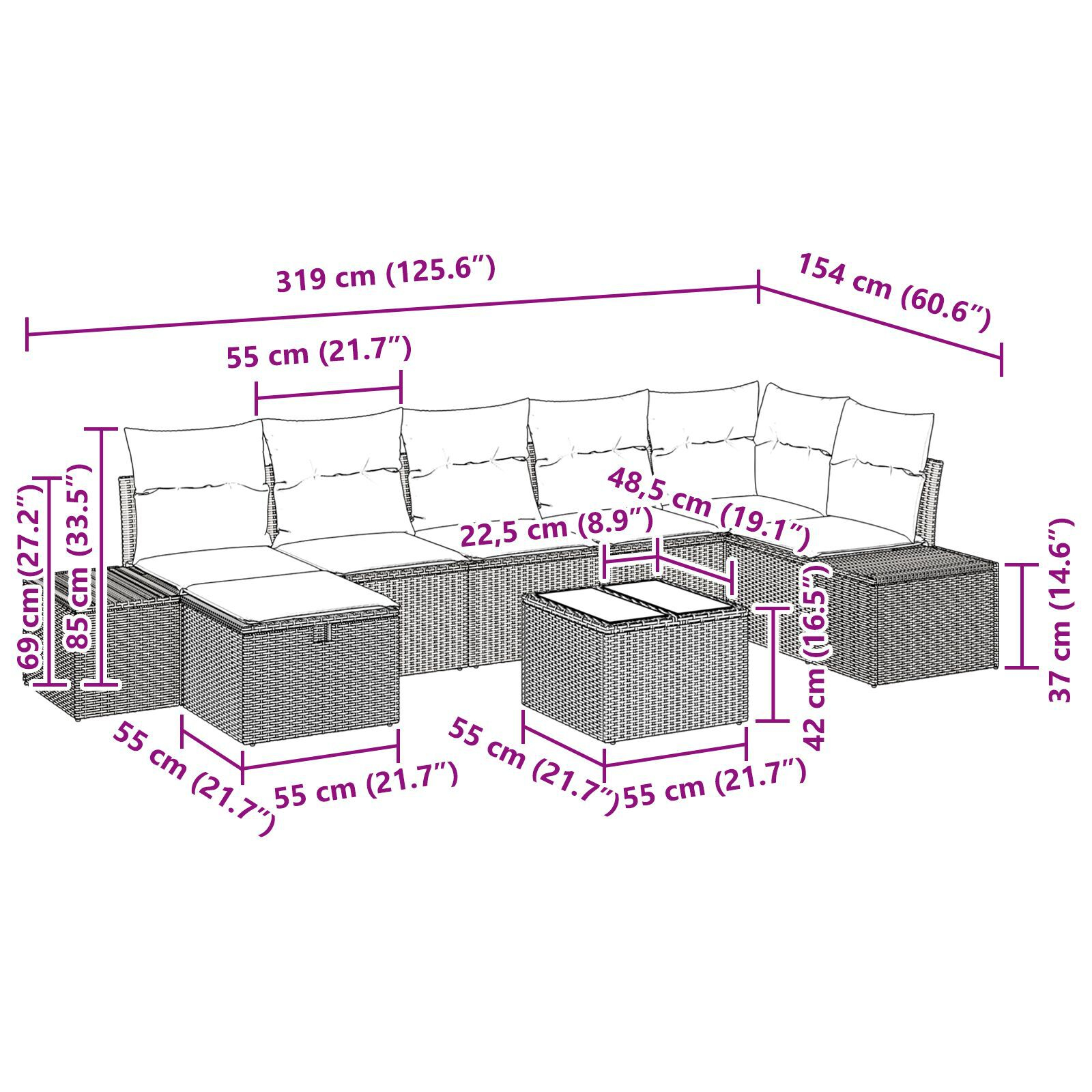 Set de canapea de grădină cu 8 piese și perne gri din ratan poli GartenMobel Dekor