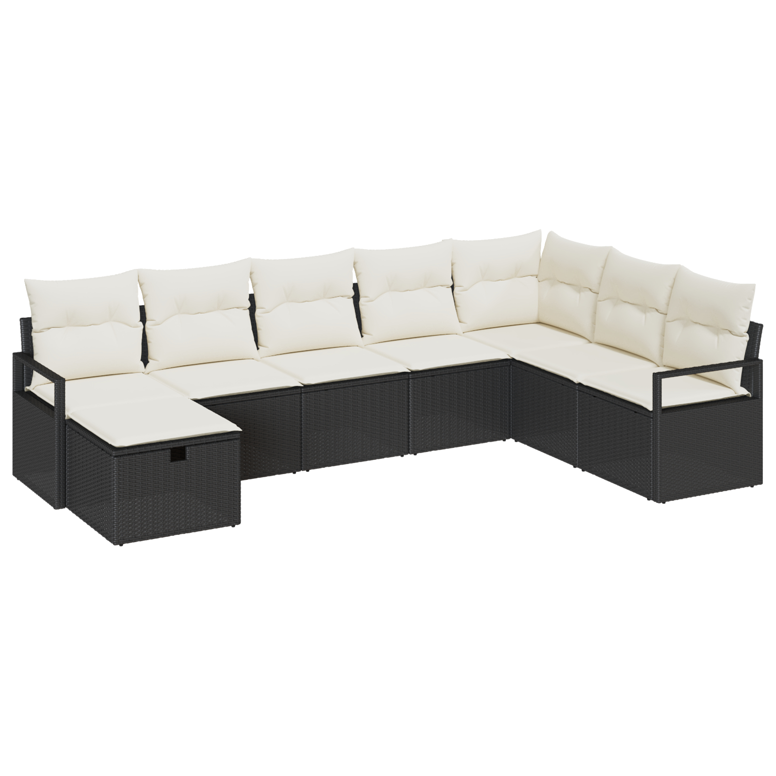 Set de canapea de grădină cu 8 piese și perne negre din ratan poliesteric, Set de canapea de grădină cu 2 locuri și perne negre din ratan poliesteric GartenMobel Dekor
