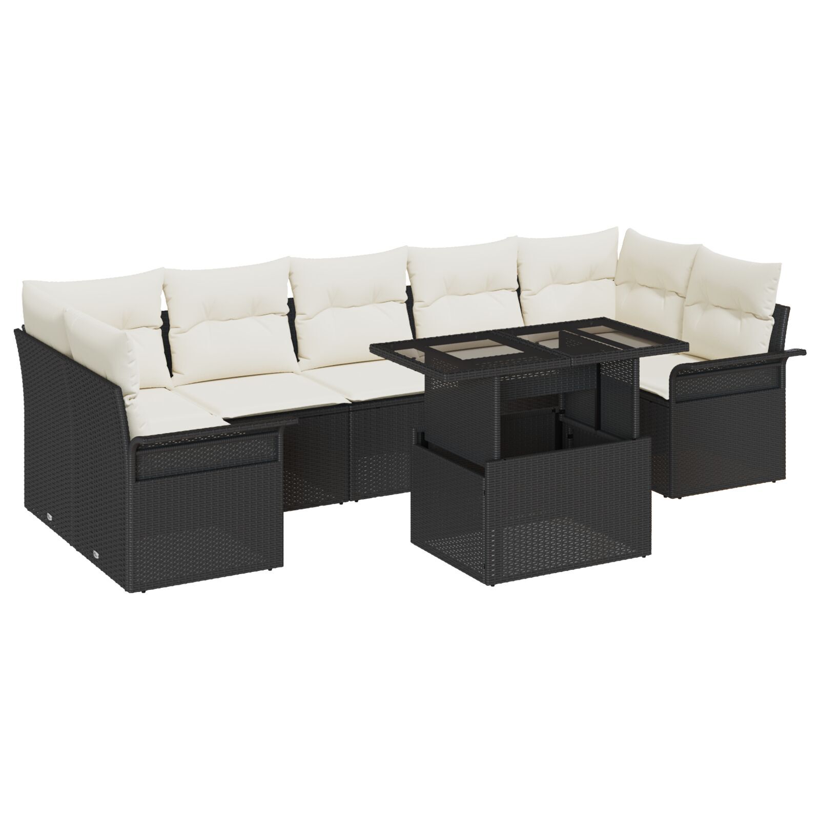 Set de canapea de grădină cu 8 piese și perne, Ratan negru GartenMobel Dekor