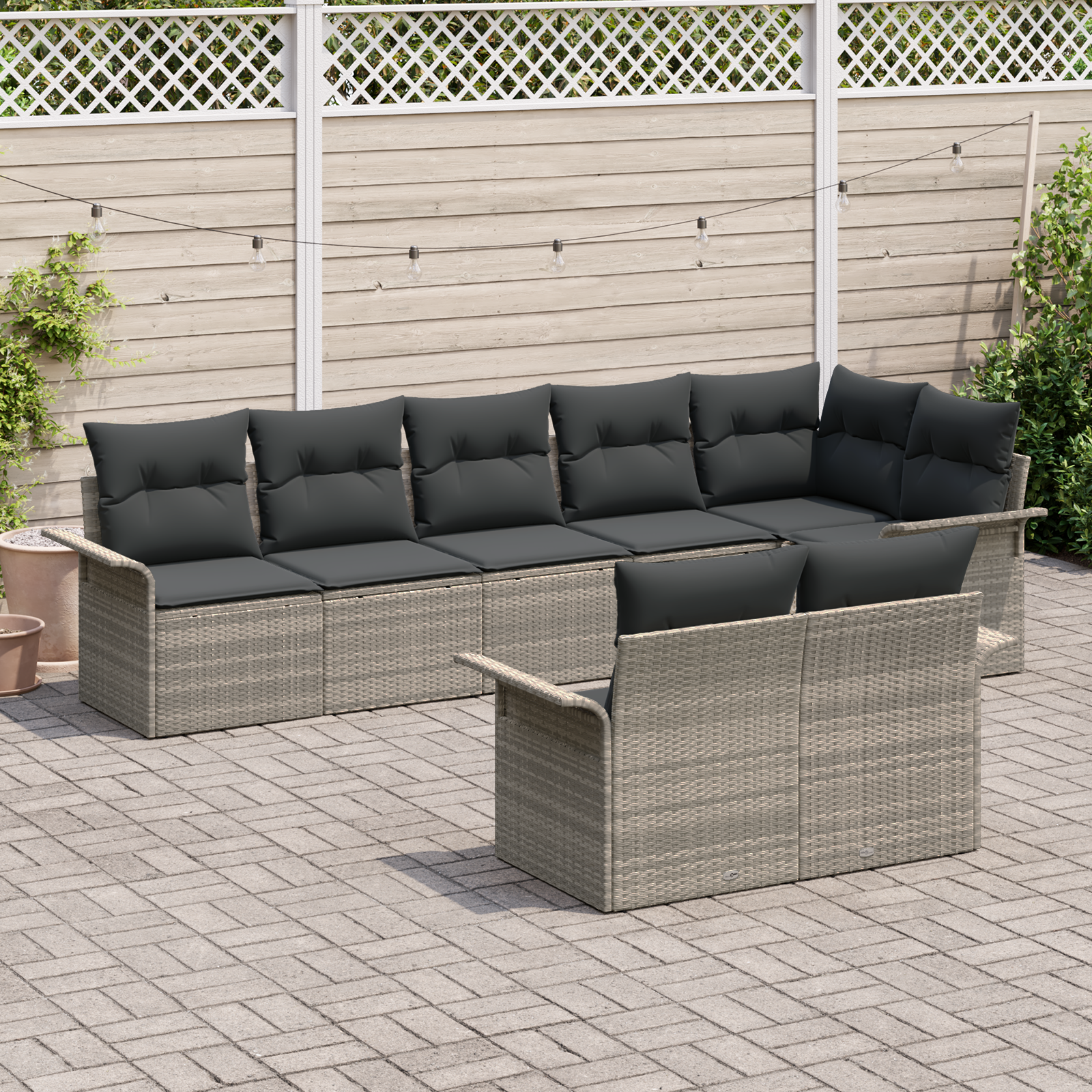Set de Canapea de Grădină cu 8 Piese și Pernițe Gri Deschis din Rattan Poli, Canapea de Grădină pentru 2 Persoane cu Spațiu de Depozitare și Pernițe Gri Deschis din Rattan Poli GartenMobel Dekor