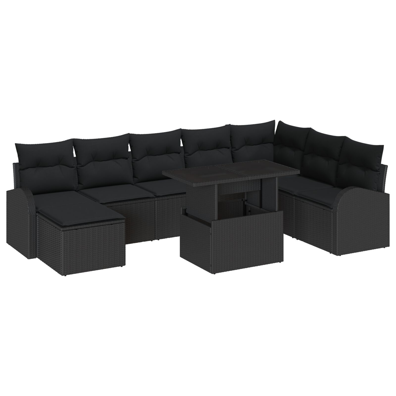 Set de Canapea de Grădină cu 9 Piese cu Perne Negru Ratan Polietilenic GartenMobel Dekor