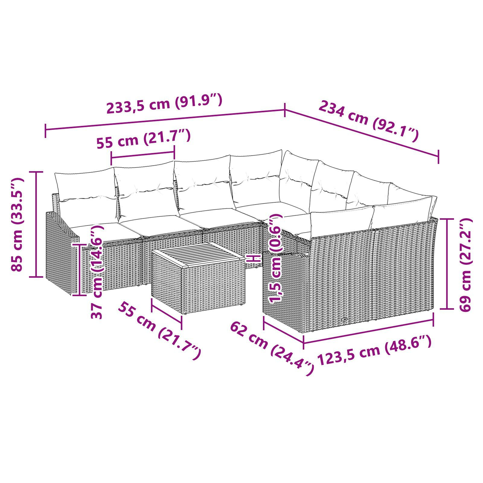 Set de canapea de grădină cu 9 piese și perne bej din ratan polimeric și lemn de acacia GartenMobel Dekor