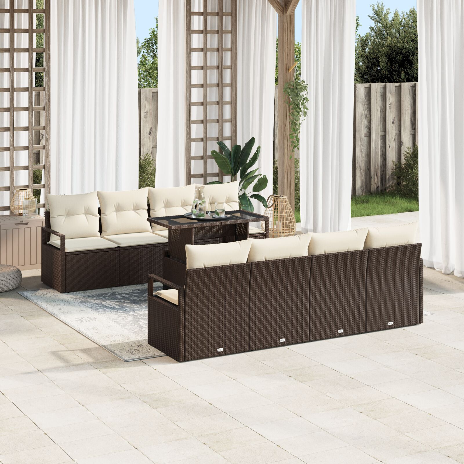Set de canapea de grădină cu 9 piese și perne Maro din ratan poli, Set de canapea de grădină cu 2 locuri și perne Maro din ratan poli GartenMobel Dekor